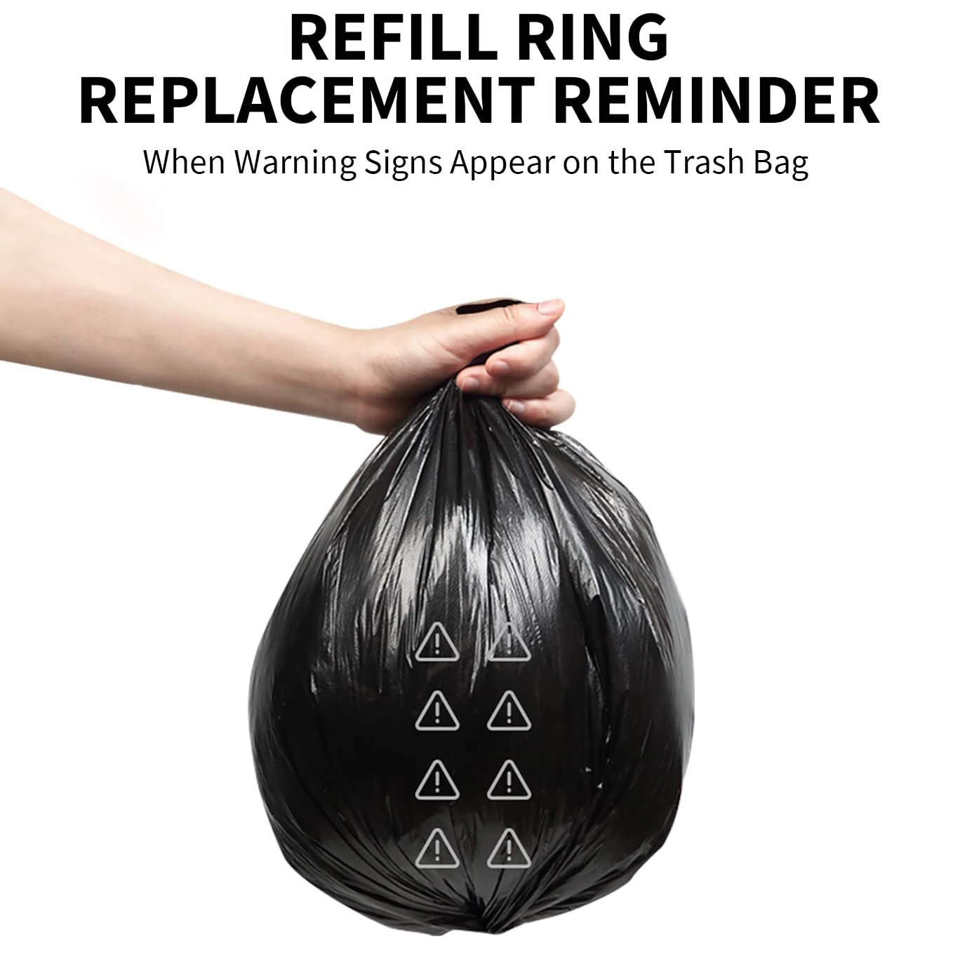 Reciba recordatorios de reemplazo: con marcas de advertencia visibles en la bolsa de basura para recordarle que rellene el anillo de la bolsa de basura.Y también puedes recibir notificaciones oportunas a través de la aplicación cuando la bolsa de basura se está agotando.