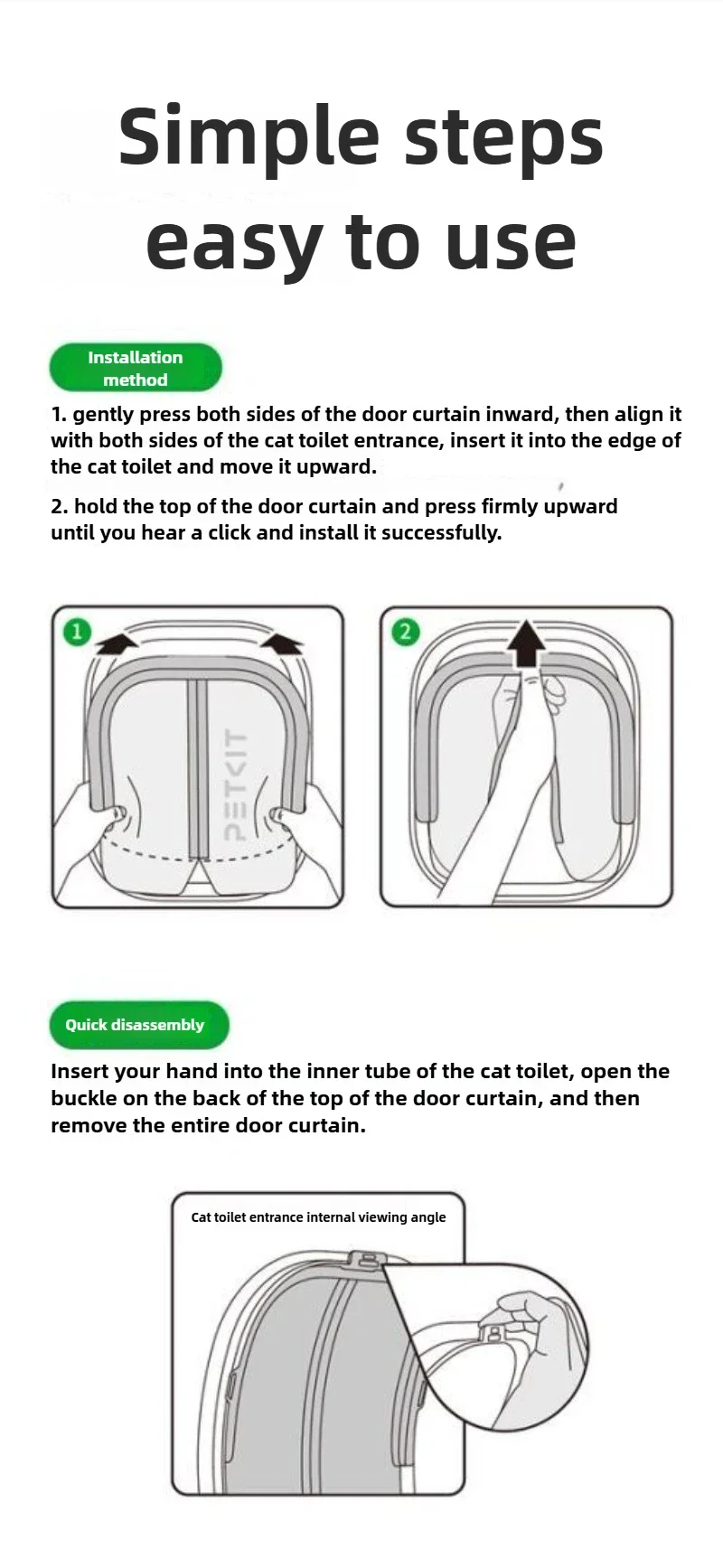 ● Las cortinas de puerta hechas a medida se adaptan al almacén de inodoro para gatos.