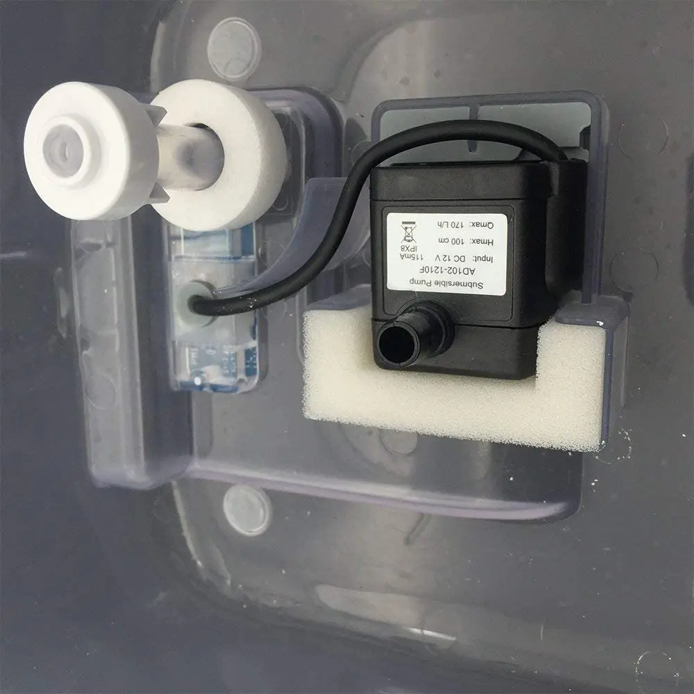 3.El filtro de espuma reemplazable evita que entren pelos y residuos en la bomba y mantiene el agua limpia.
