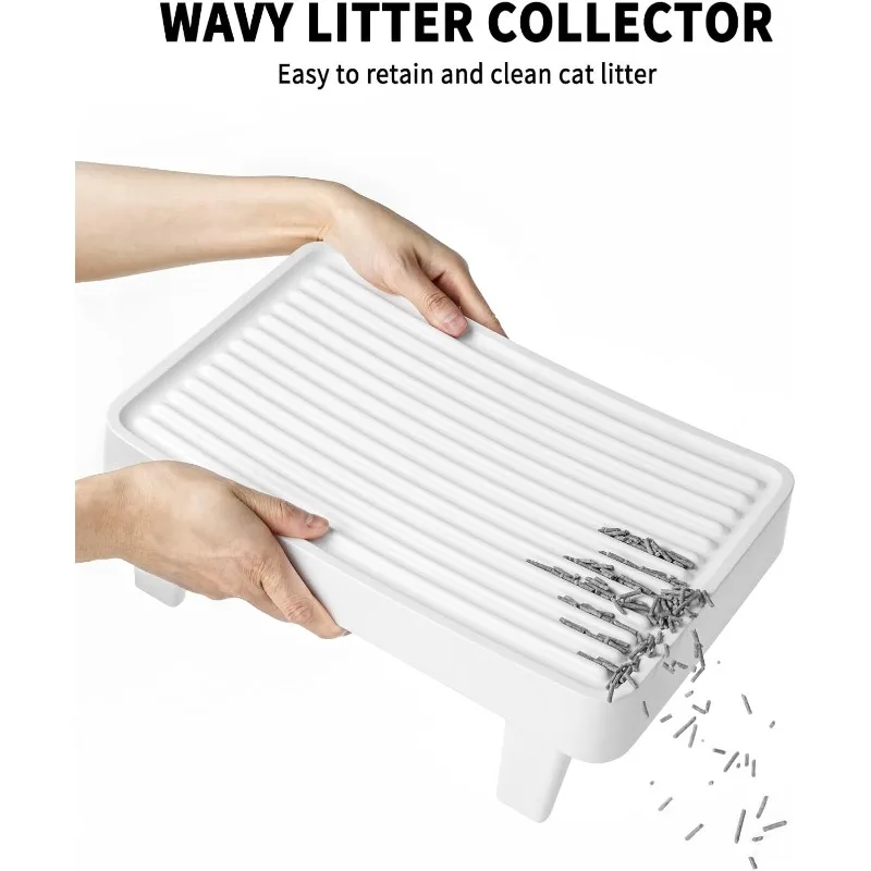 Seguimiento de baja arena para menos desorden: el recolector de forma ondulada del pedal recoge la basura de las patas del gato, evitando que se disperse.