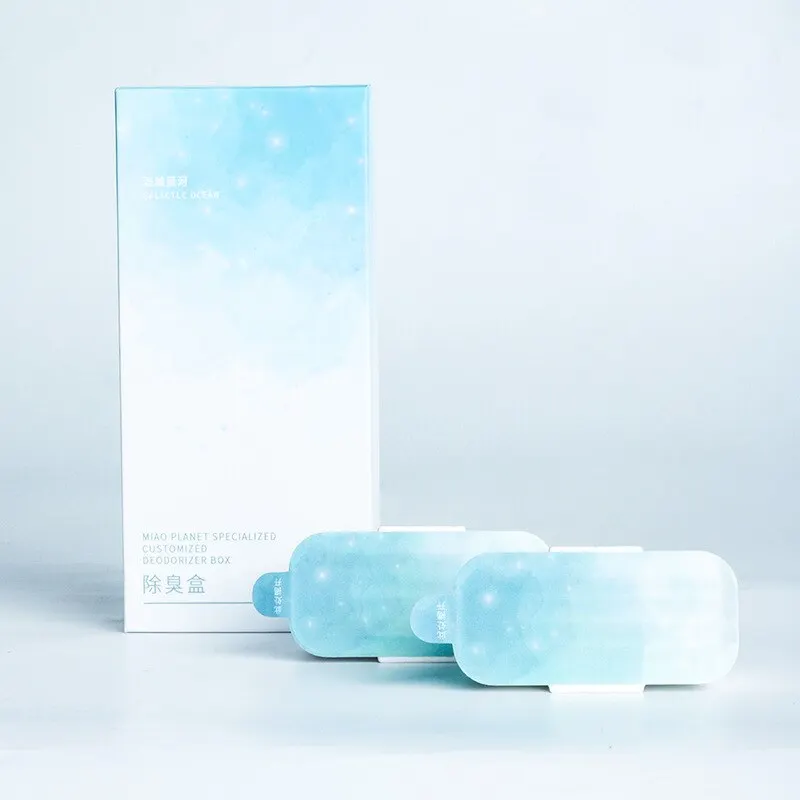 Recibido muy rápidamente, pero un montón de bolsas de exceso de embalaje... Es un desastre, la Caja es más pequeña que la original, pero los desodorantes se adaptan perfectamente a la arena Holove de mi gato🐱🐈Incluso si no estoy seguro de la eficacia de los aromas no es trascendente, pero mejor que nada...