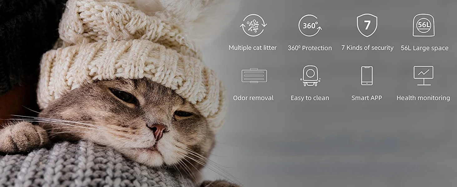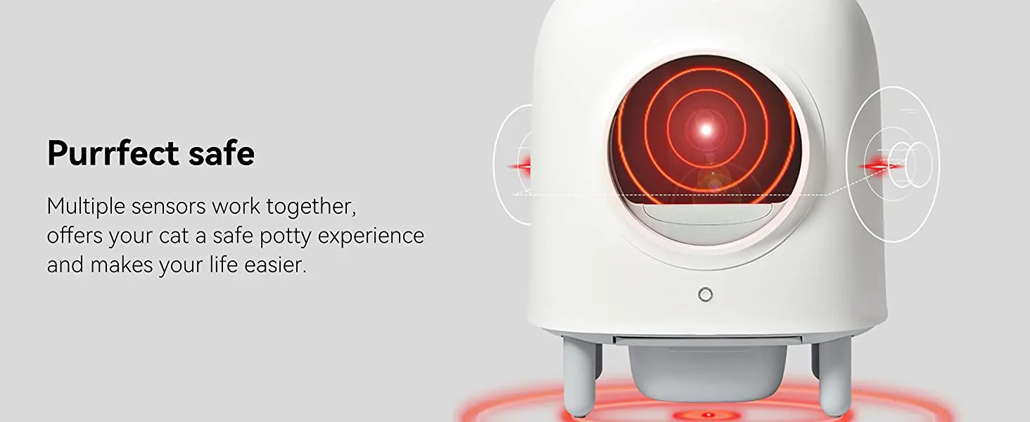 LA SEGURIDAD ES NUESTRA PRIORIDAD: PIR piroeléctrico, radar de microondas, protección de corriente, sistema de protección de gatitos, sistema de autocomprobación de encendido, alertas remotas. Ofrece a su gato una experiencia de orinal segura y le hace la vida más fácil.
