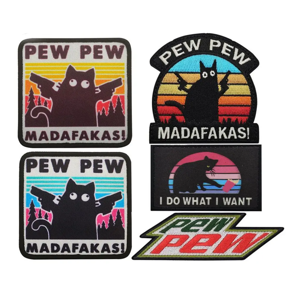 Nombre del producto: PEW PEW MADAFAKAS, parche divertido, emblema, brazalete, insignia, adorno de costura, parches bordados decorativos geniales