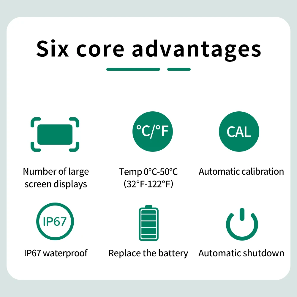 También puede medir la temperatura de la solución, midiendo rangos de temperatura desde 0℃ a 60℃,℃/℉ Unidad conmutable para satisfacer diversas necesidades.