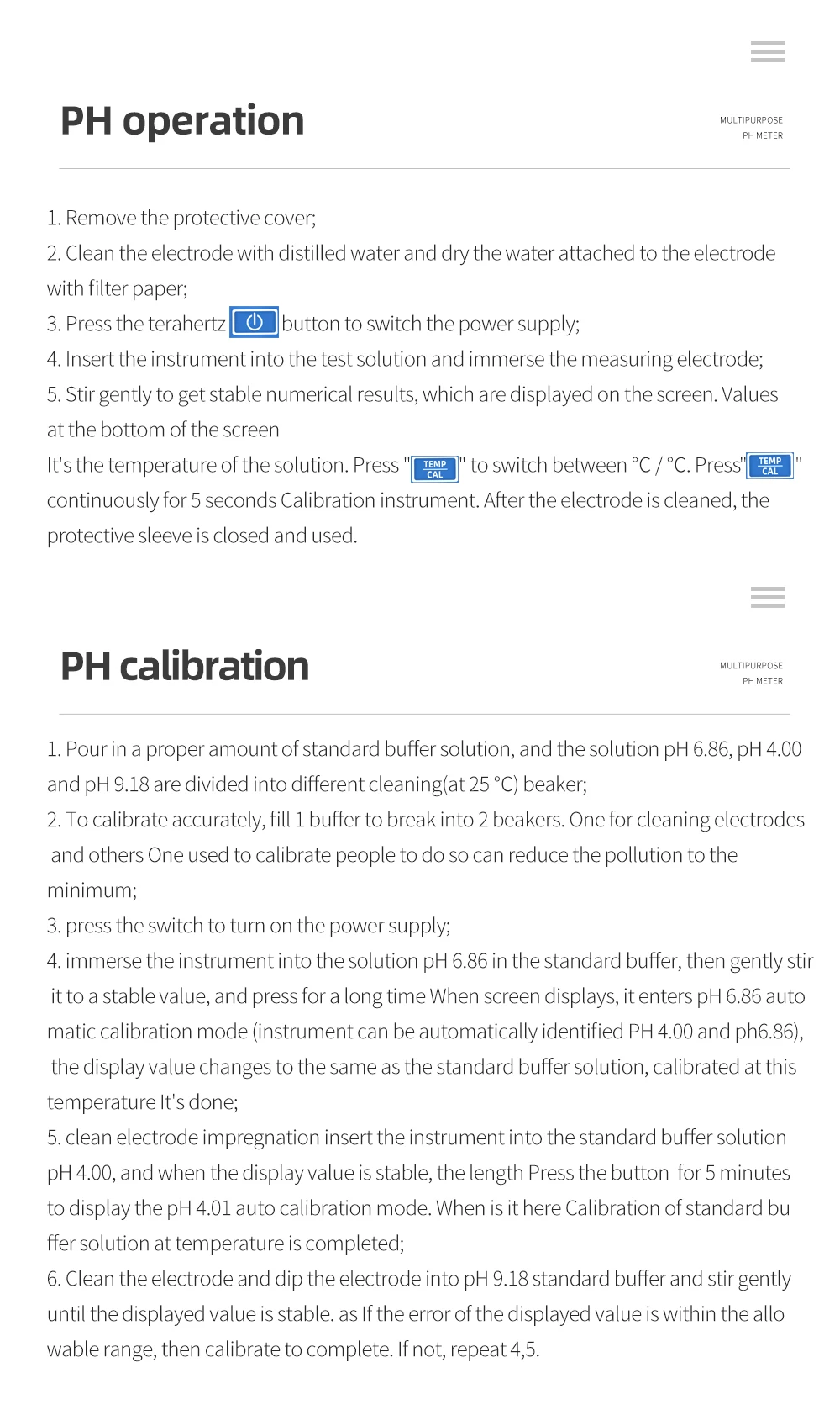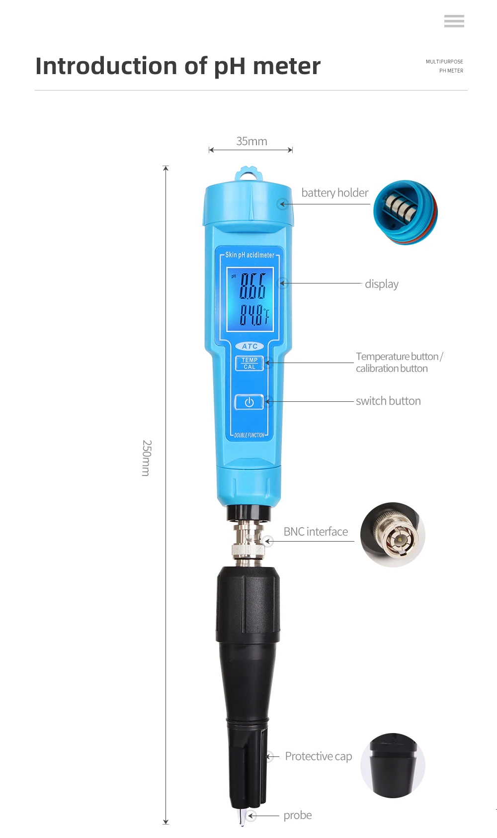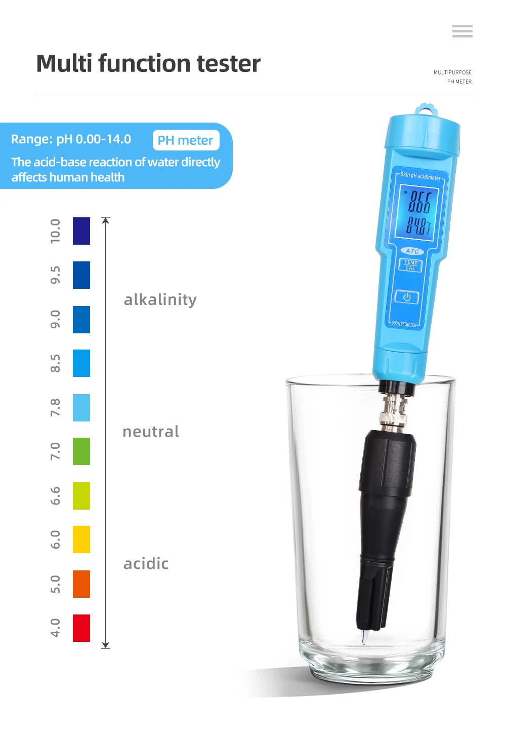 El probador de PH está diseñado con función 2 en 1, que se puede medir el PH y la temperatura simultáneamente con alta precisión.Medición omnidireccional de la calidad del agua para garantizar la salud de la calidad del agua.