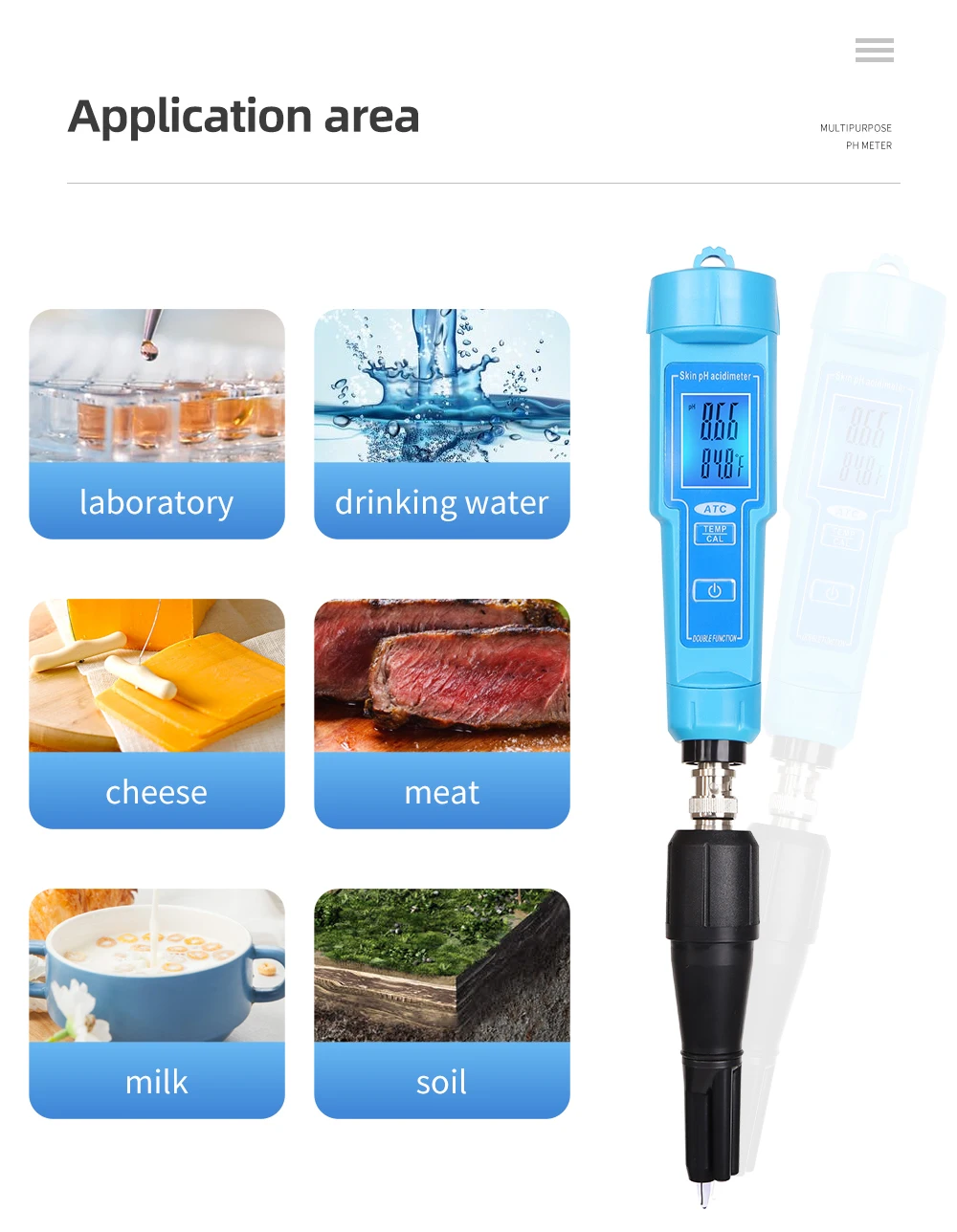 PH-61181 Medidor de PH digital Analizador de acidímetro Probador de calidad del agua Sonda de PH reemplazable para cremas de queso de suelo Leche de carne