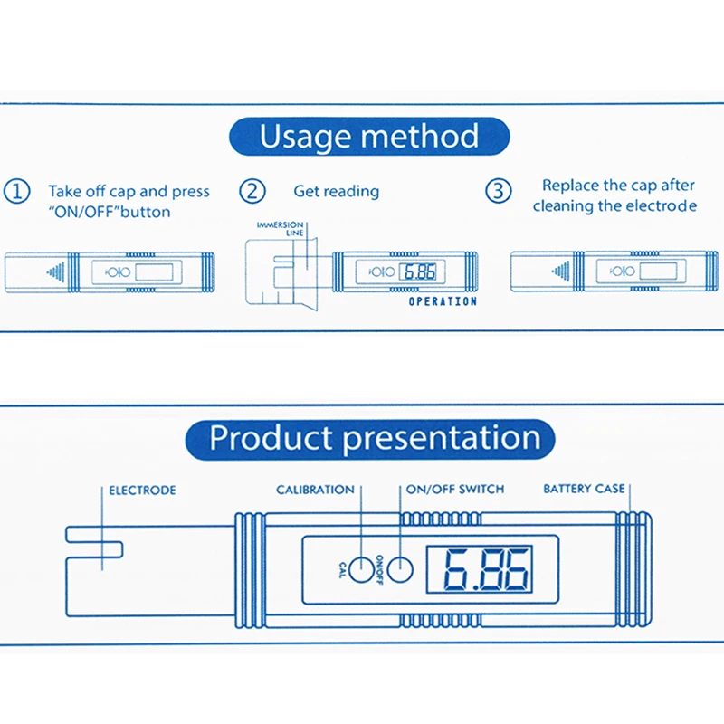 Nota: El bolígrafo de prueba de PH se calibra con polvo de calibración antes del envío, luego se empaqueta y se puede usar directamente después de recibir la mercancía.El producto no incluye pilas, por lo que es necesario configurar las pilas, las pilas son 2 * LR44