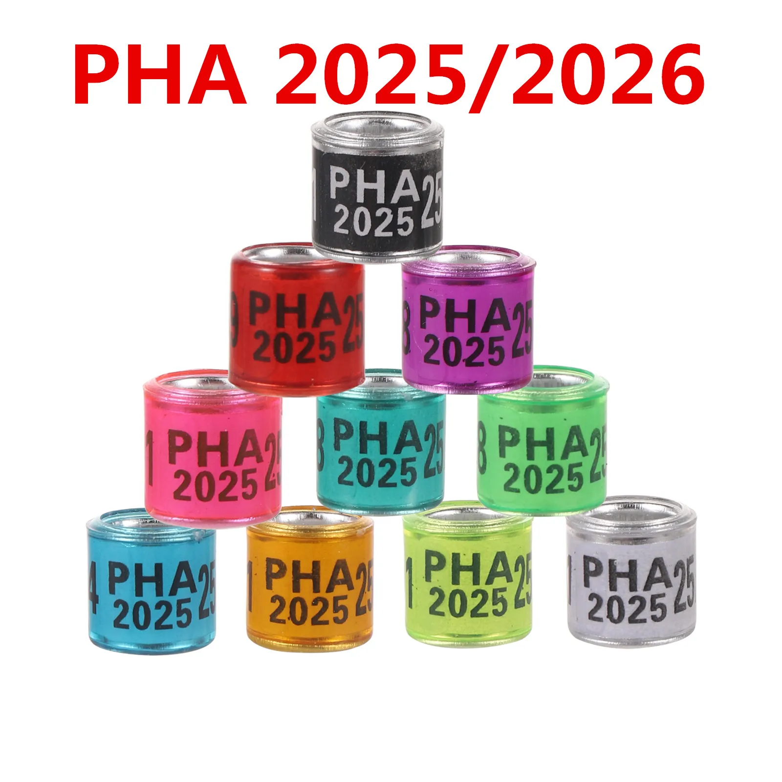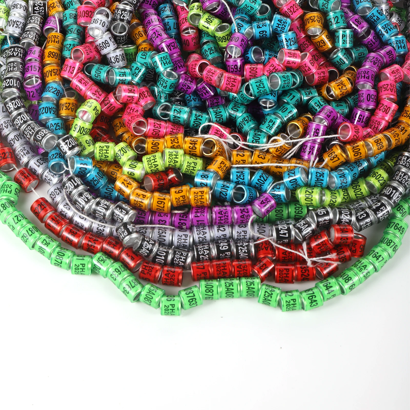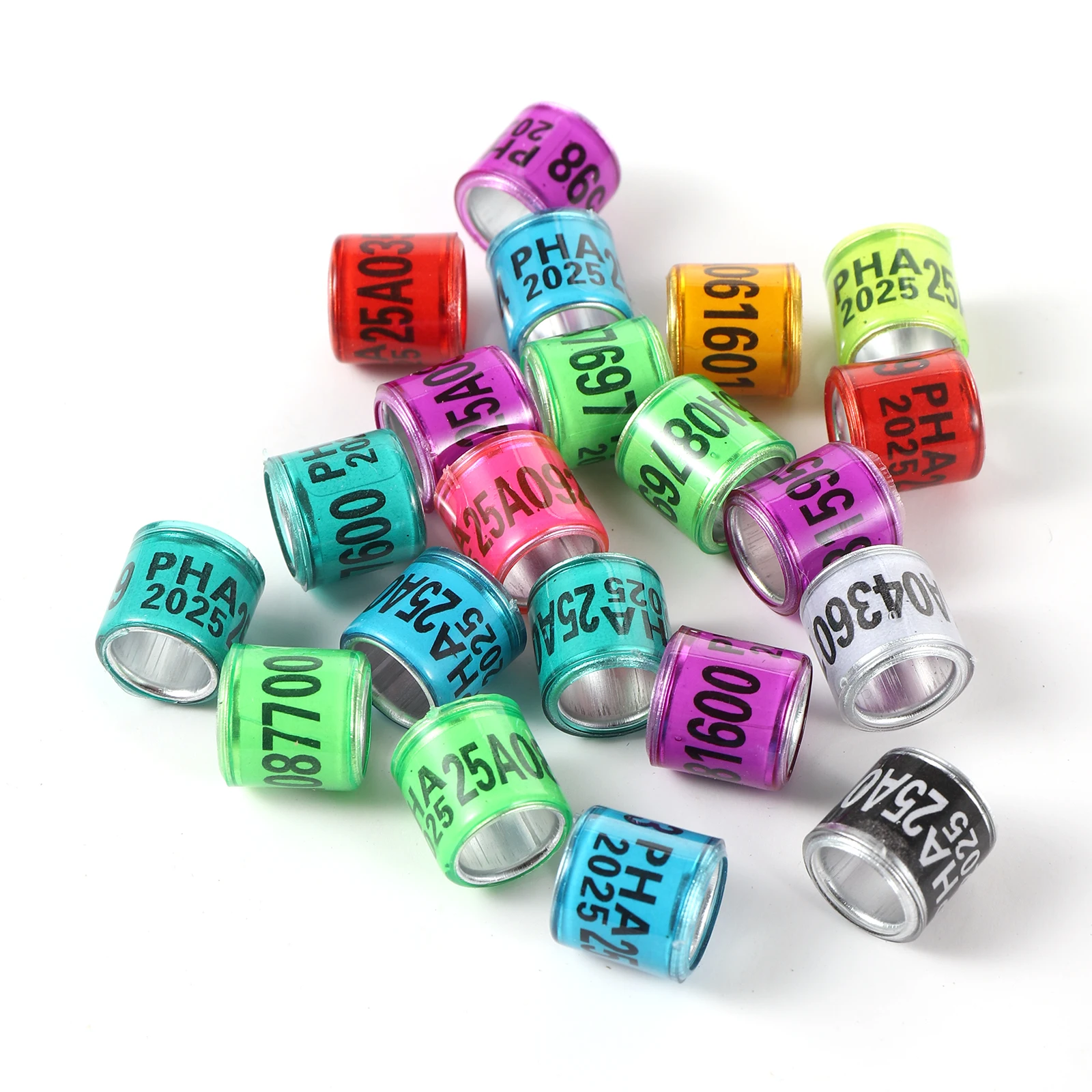 PHA 2025/2026 Anillo para pie de paloma Diámetro interior 8 mm con número Anillo para pie de pájaro de plástico de aluminio Accesorios para pájaros multicolores 50 piezas
