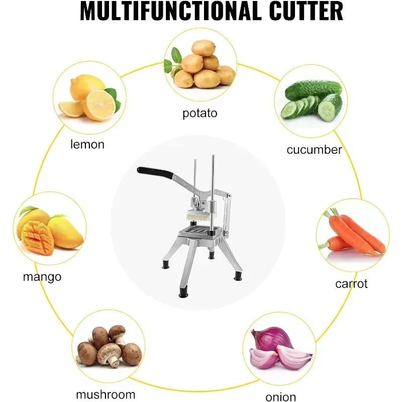 Picadora multiusos para verduras y frutas: la picadora de alta resistencia es muy adecuada para restaurantes y cocinas domésticas. Se puede utilizar para cortar patatas, zanahorias, pepinos, manzanas, peras y otras verduras y frutas. Es ideal para quienes desean preparar verduras y frutas para ensaladas, papas fritas y postres de forma cómoda y rápida.