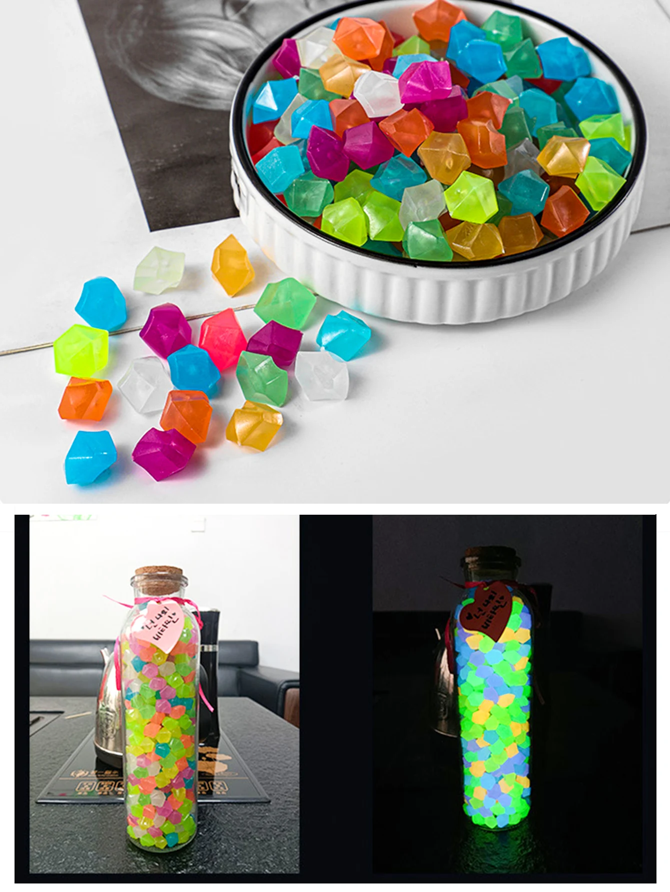 Piedras luminosas artificiales para exteriores, guijarros que brillan en la oscuridad, decoración de peceras y acuarios, colores mezclados, bolsa de 100/200 piezas