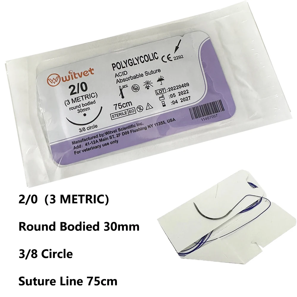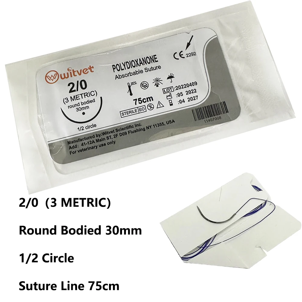 Piezas para perro, accesorio específico para PGA PDO 1/2, círculo 3/8, 75CM, 90CM, con aguja 2/0, 3/0, para demostración de enseñanza y ejercicios, 12 unidades