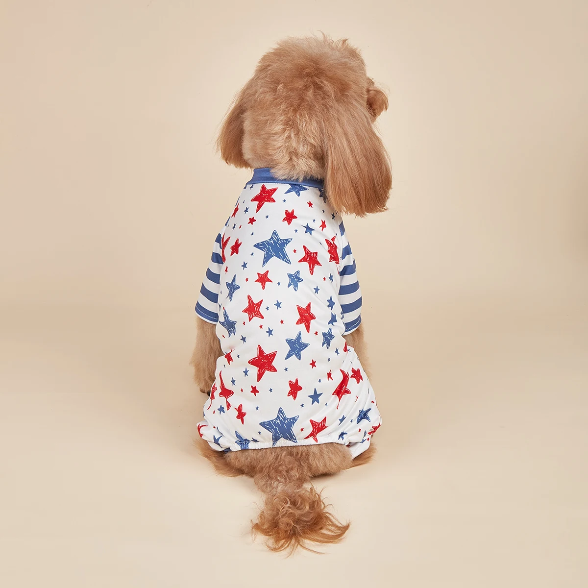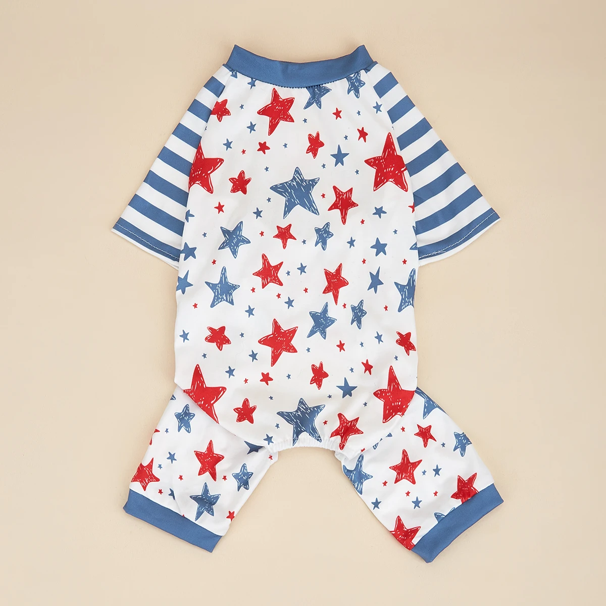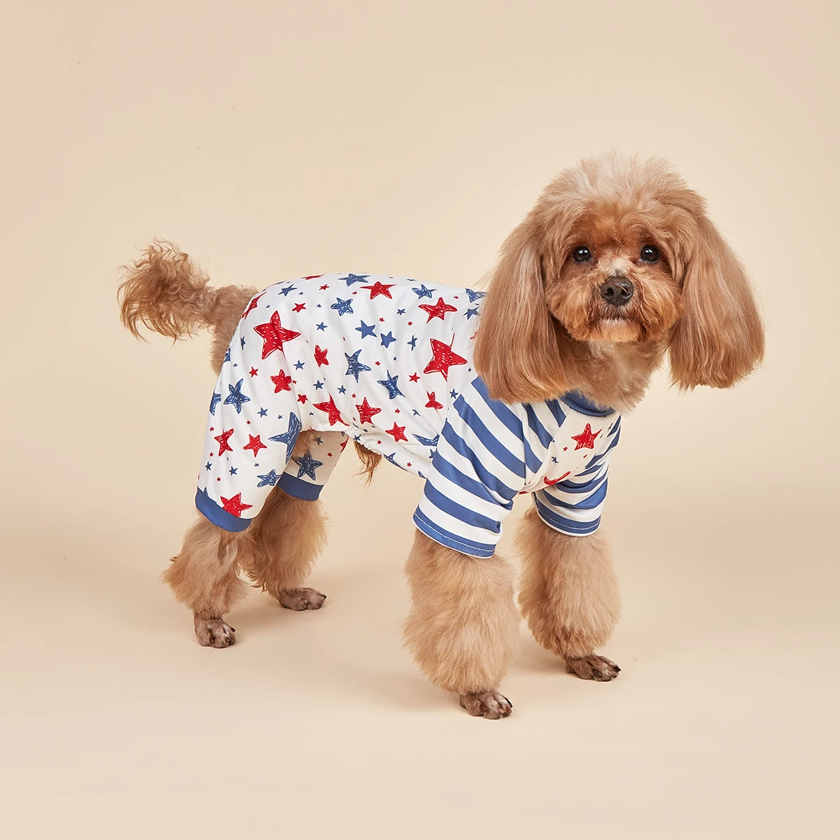 Pijama de rayas azules y blancas para perro, ropa de estrella con bandera americana para perros pequeños, niña, niño, cachorro, mascotas medianas, Chihuahua, Yorkie f