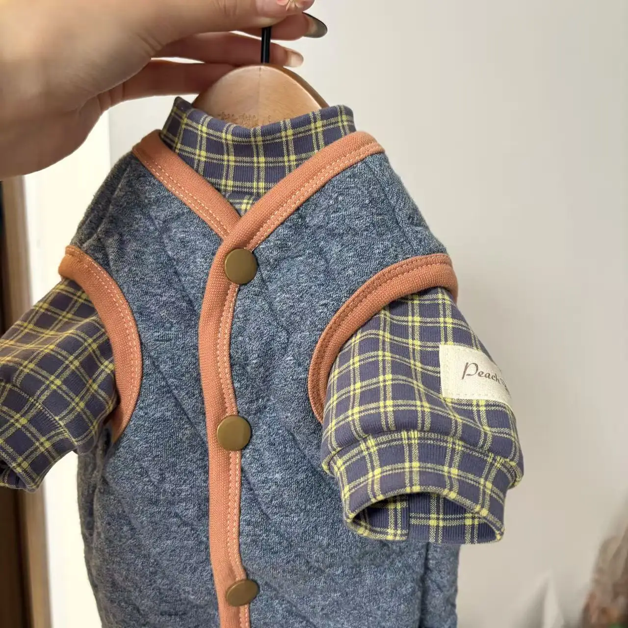 Pijamas de algodón a cuadros azules para el pelo, chaqueta de algodón suave para gato en invierno, chaleco para gato Sphynx, traje cálido de moda para Devon Rex - imagen 1