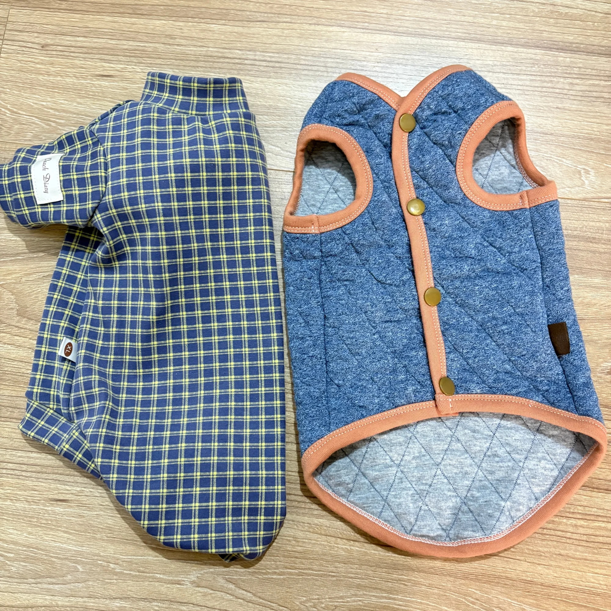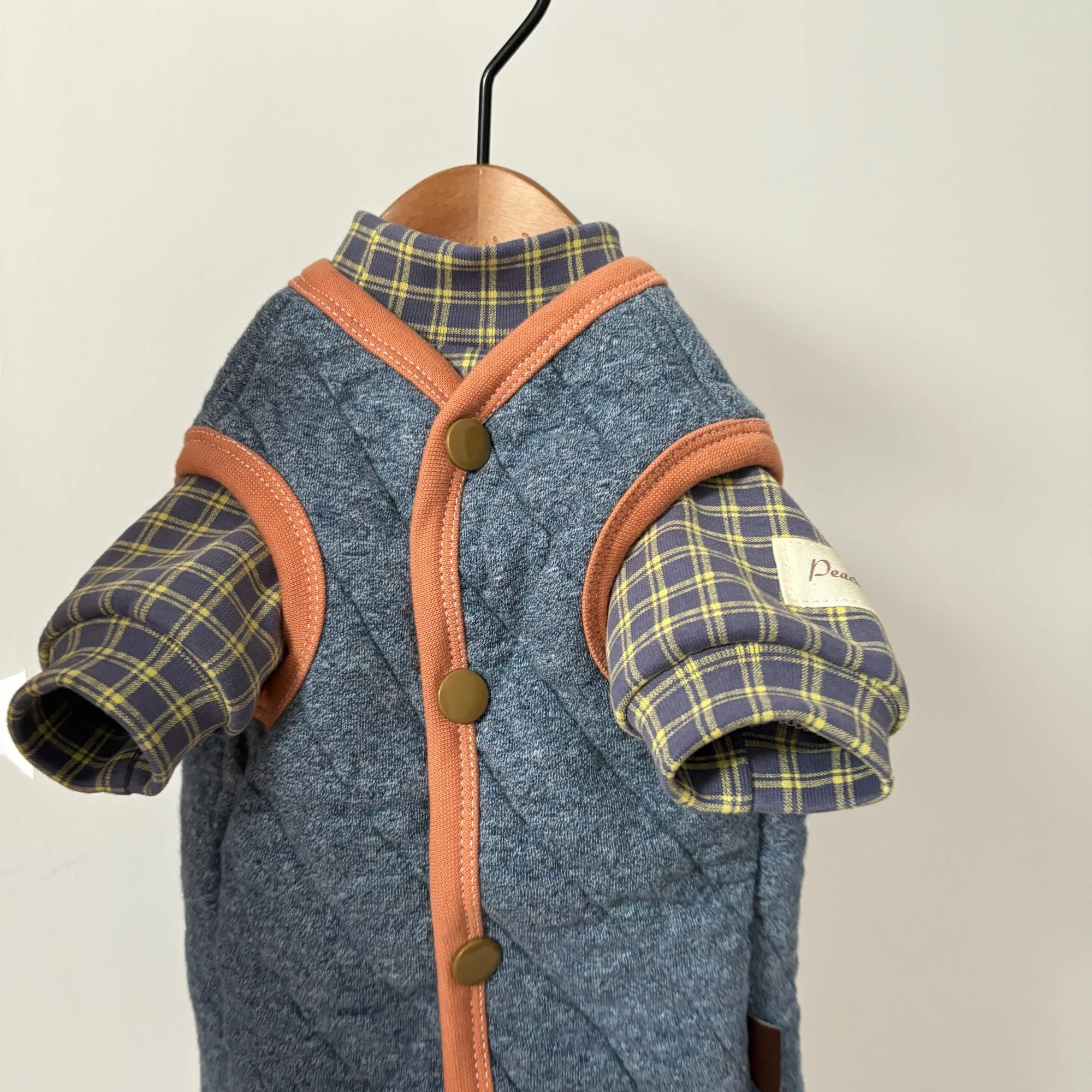 Pijamas de algodón a cuadros azules para el pelo, chaqueta de algodón suave para gato en invierno, chaleco para gato Sphynx, traje cálido de moda para Devon Rex