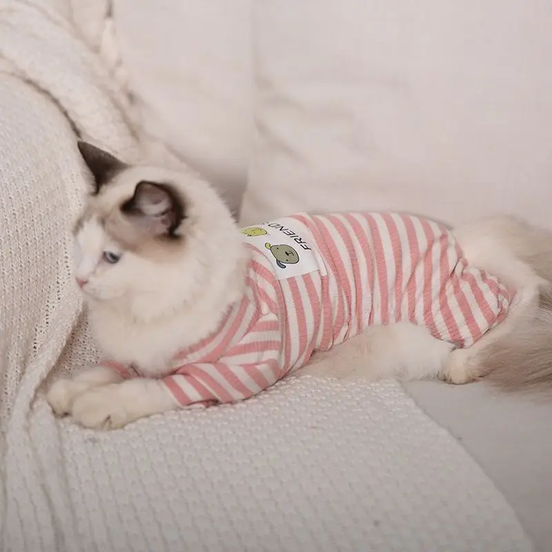 Pijamas de algodón suave para gatos, disfraces con estampado a rayas, monos para mascotas para perros pequeños y gatos, ropa Sphynx, monos lindos para gatitos