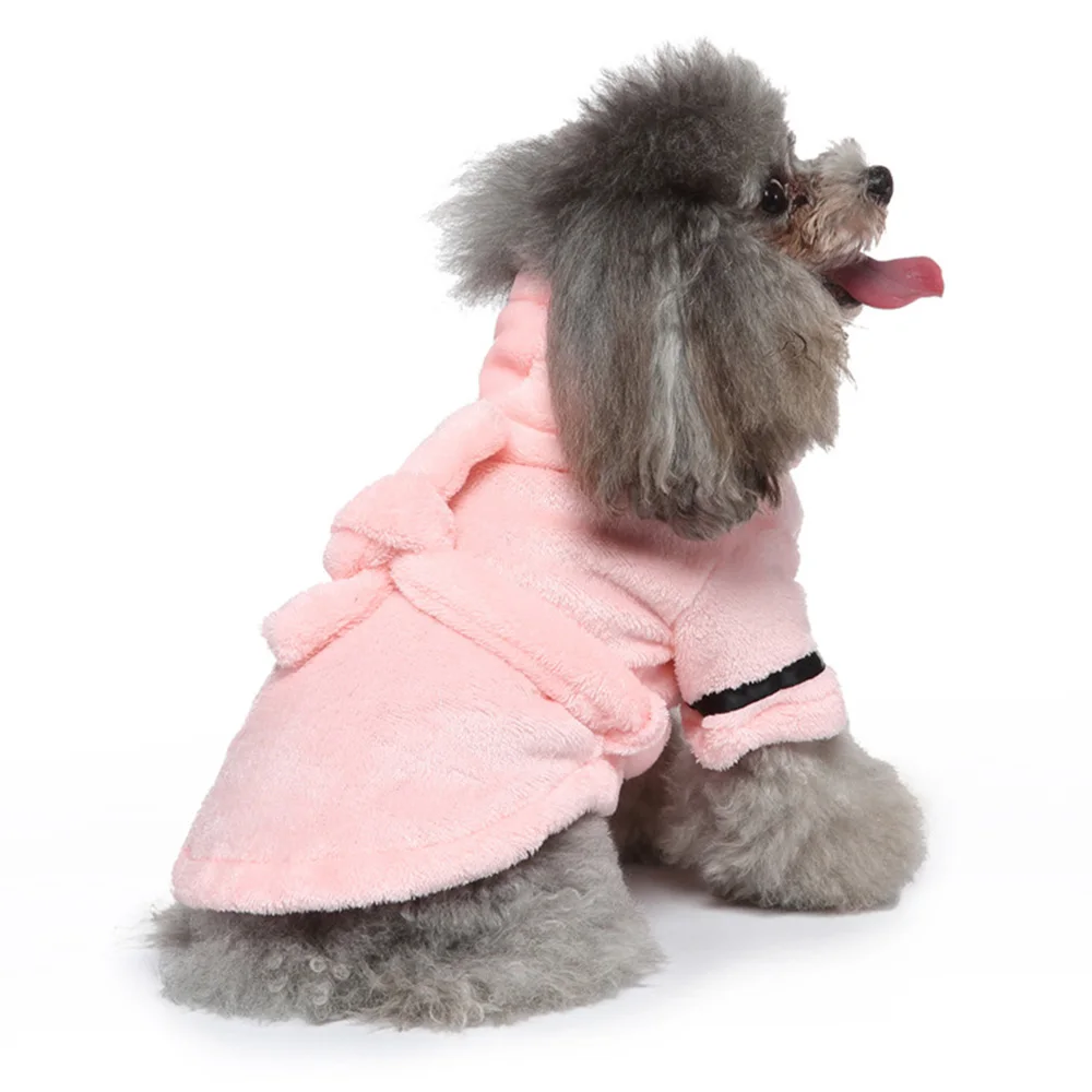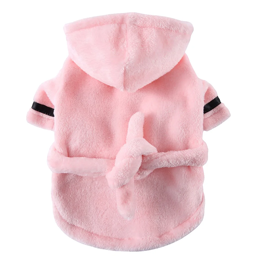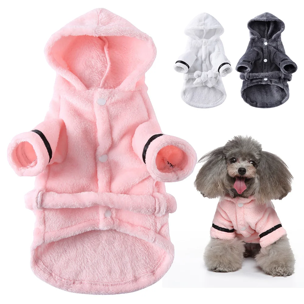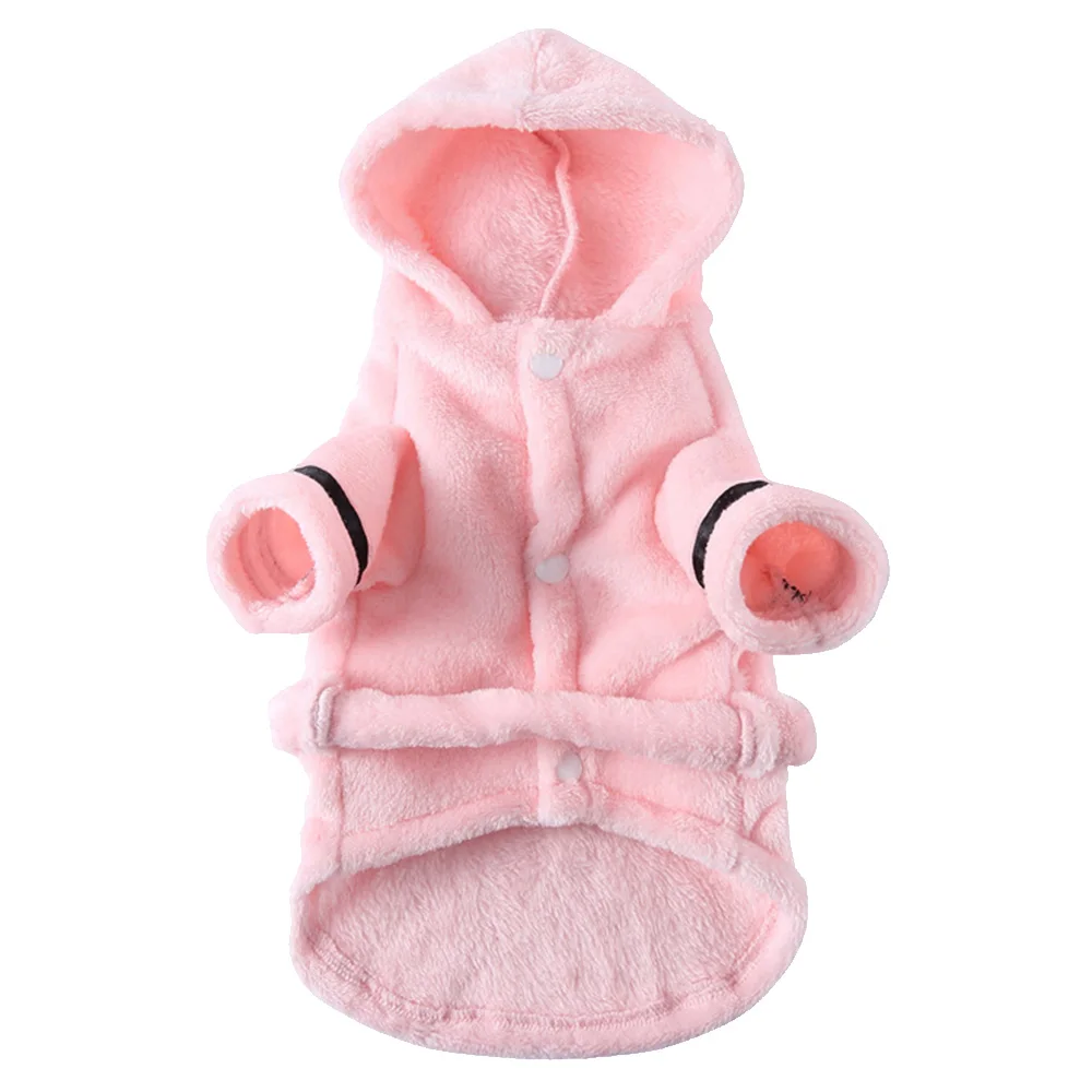 Pijamas cálidos de lana para perros, Sudadera con capucha de felpa suave para perros, ropa de dormir, trajes bonitos para mascotas, ropa para perros pequeños, gatos, Chihuahua, suministros para mascotas, Rosa