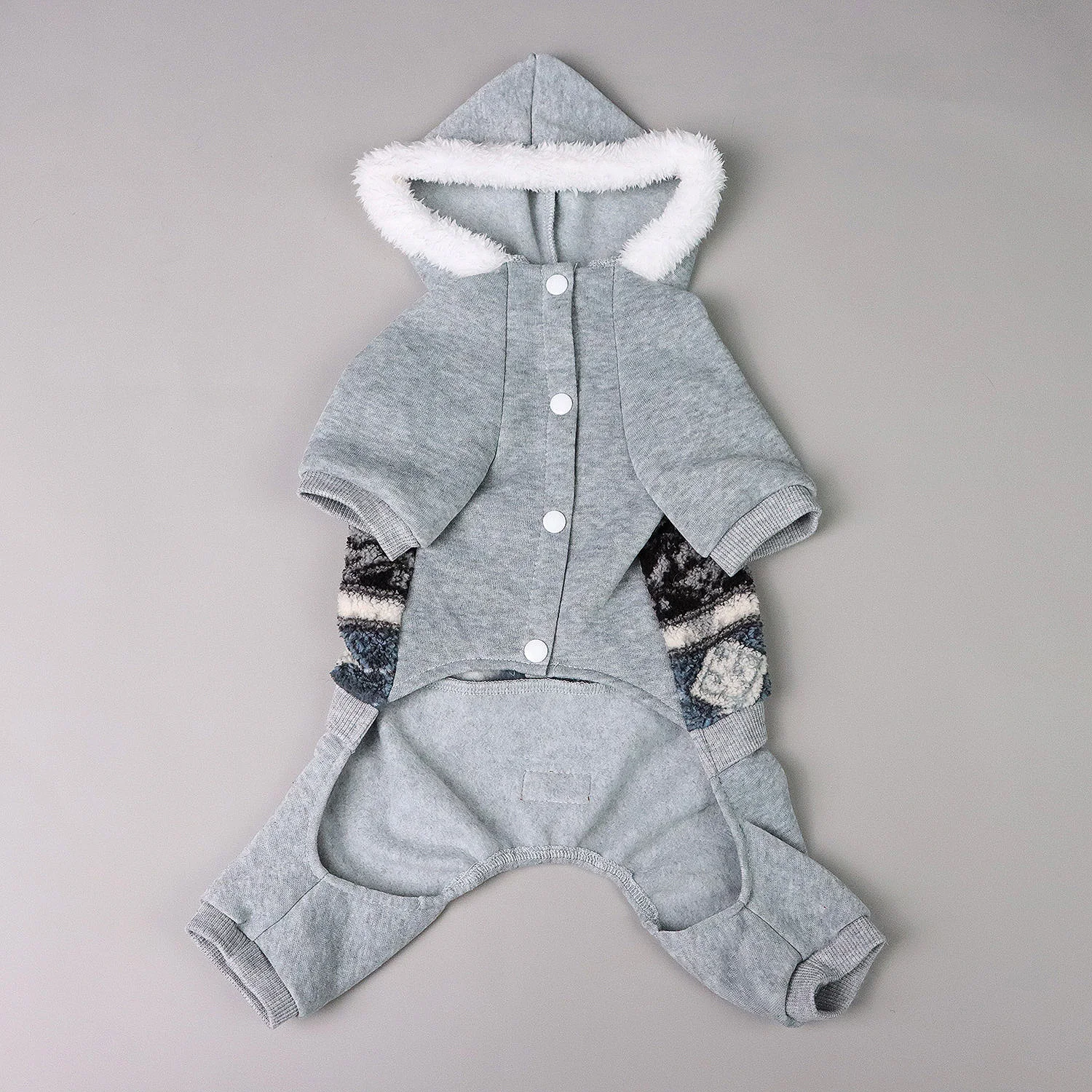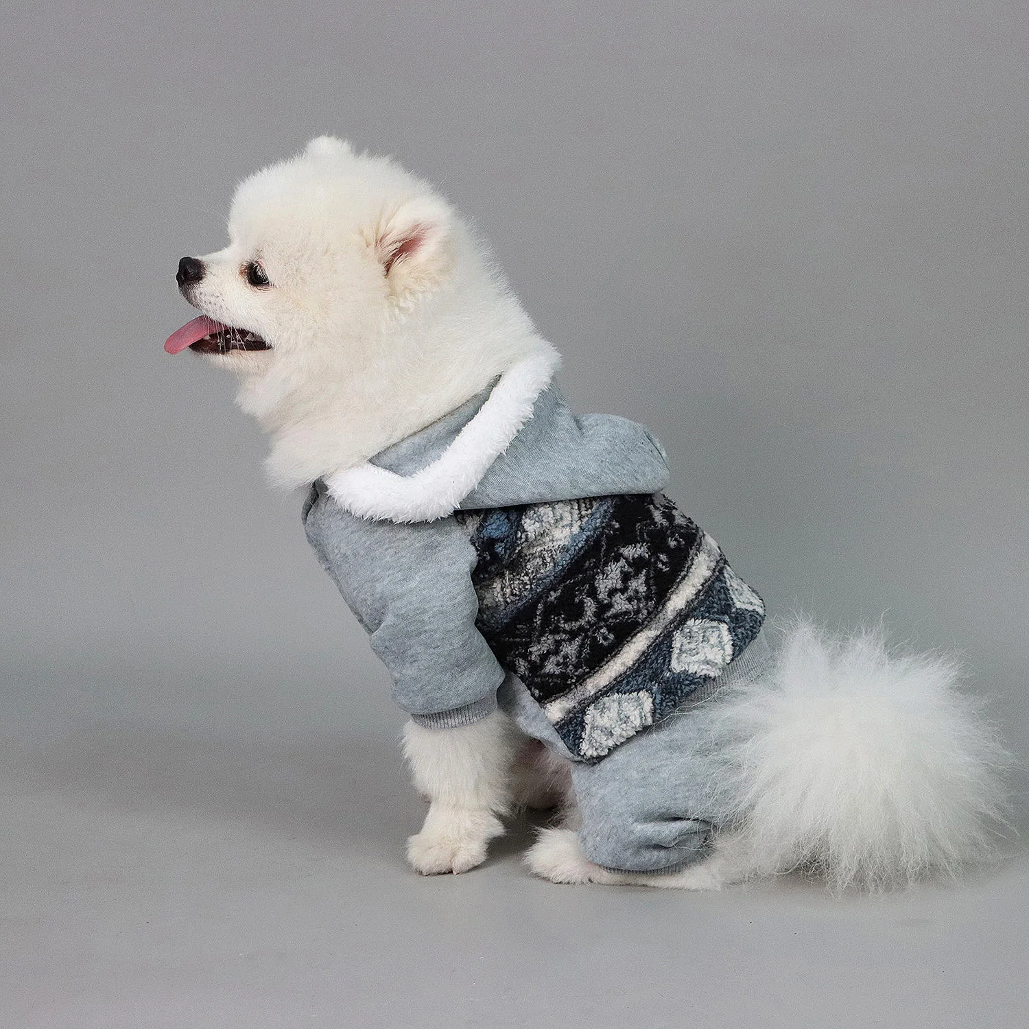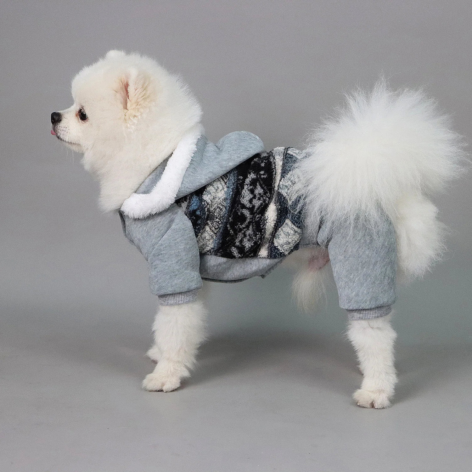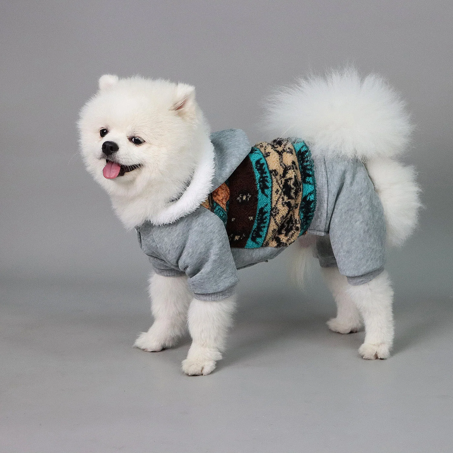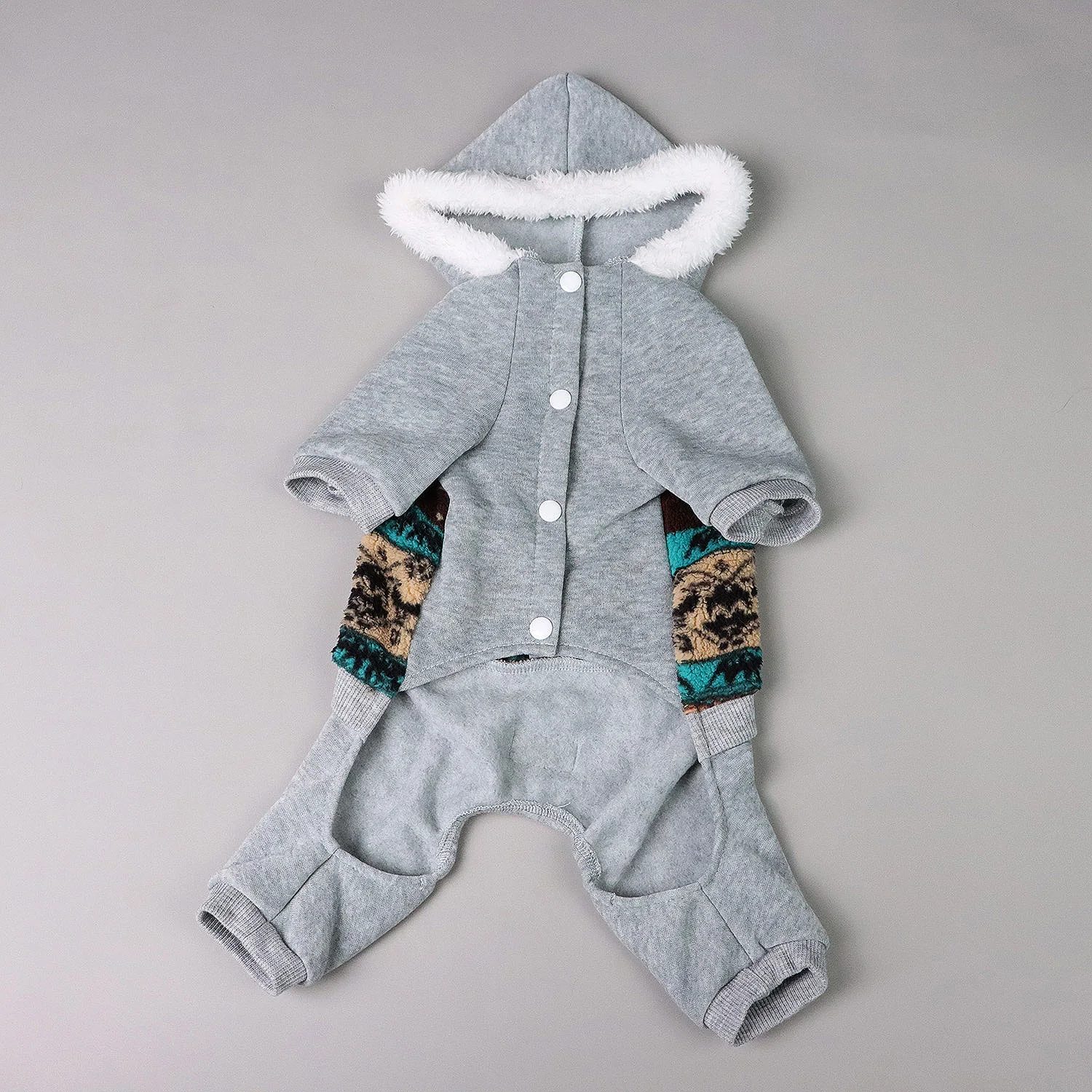 Pijamas con capucha para perros pequeños, ropa cálida mediana para cachorros, mono en invierno, diseño de patrón clásico de cuello alto para niño y niña