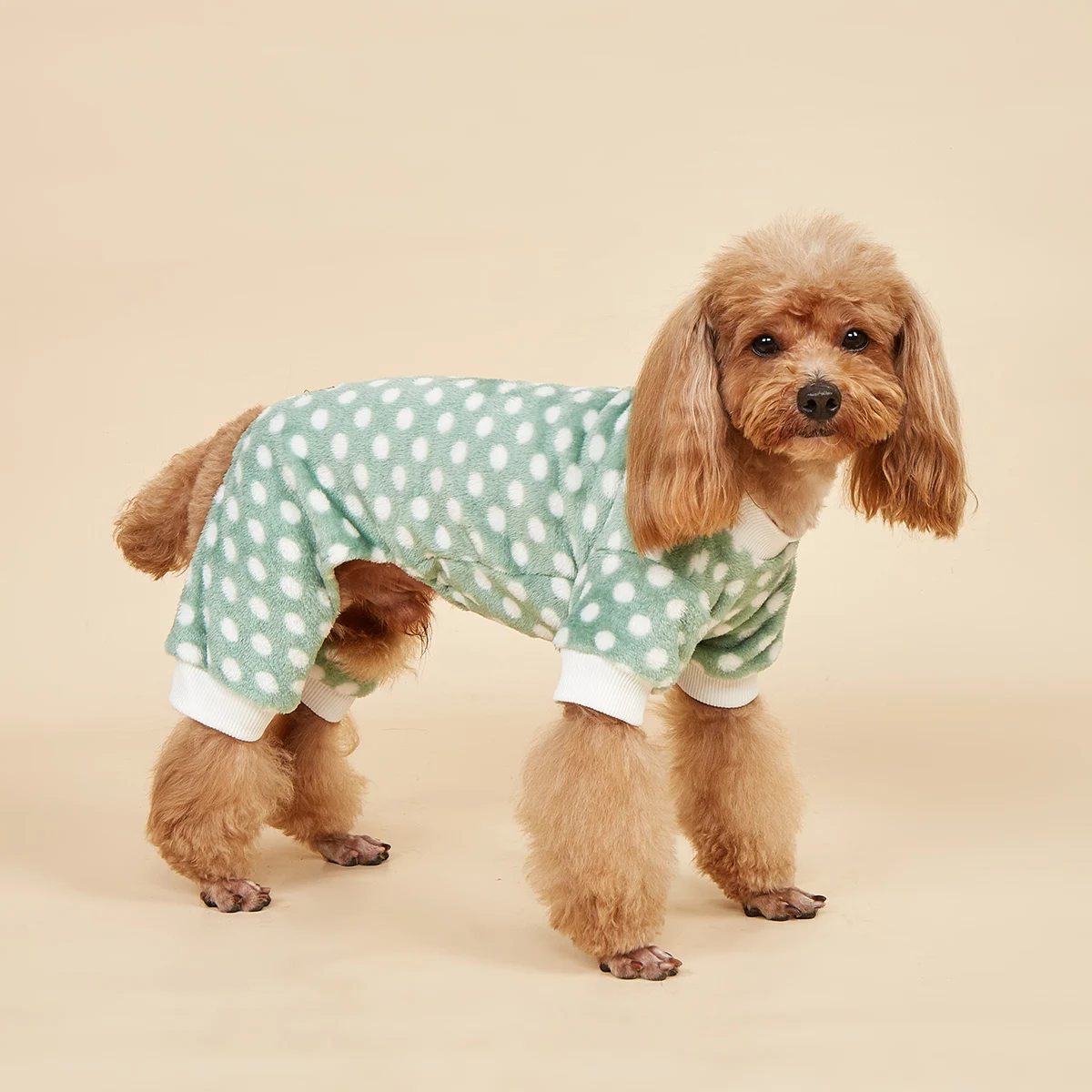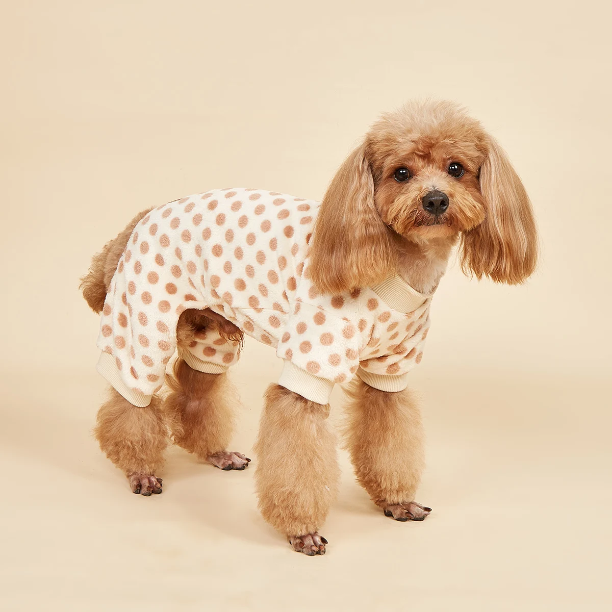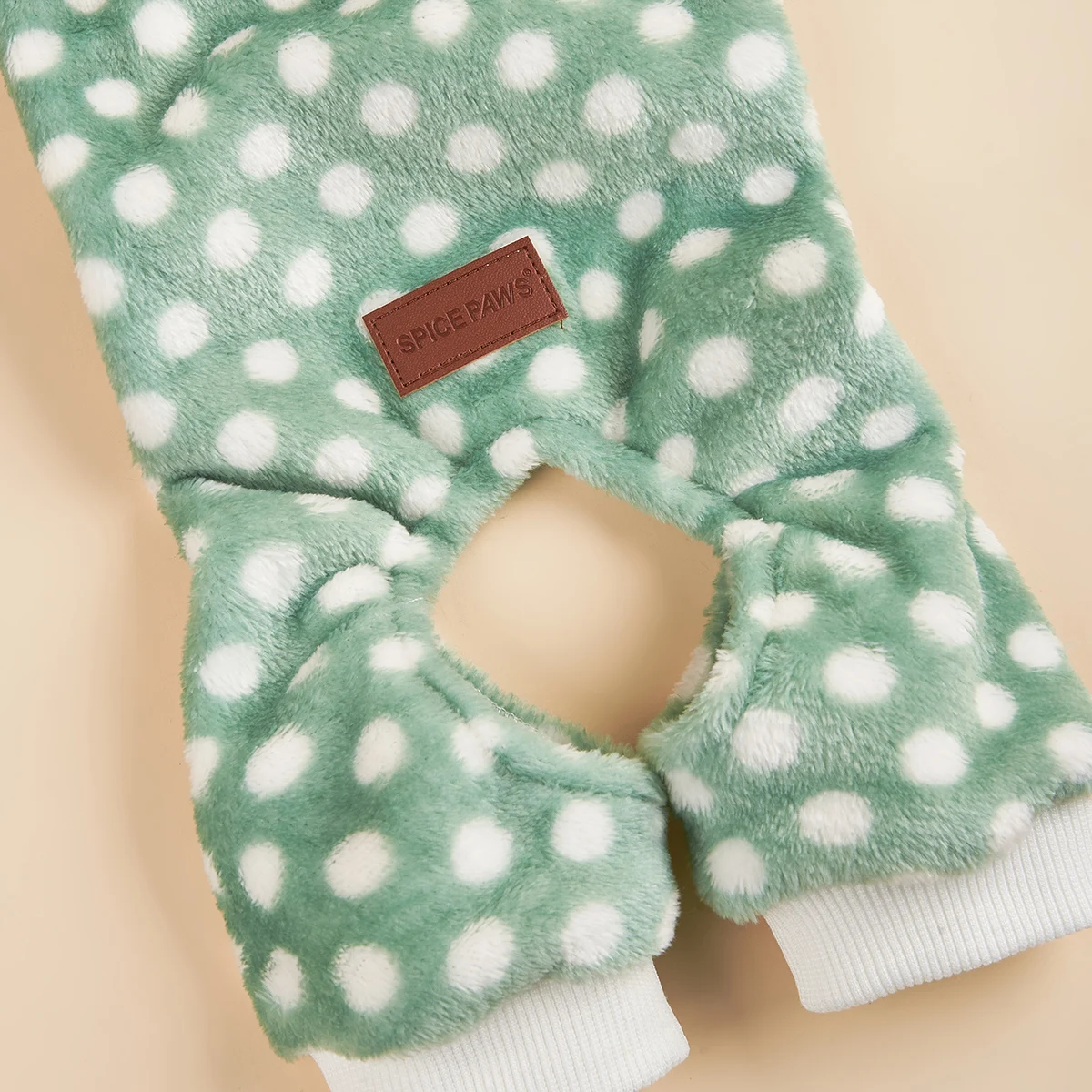 Pijamas de felpa para perros pequeños, ropa cálida de invierno para cachorros, suéter, traje para clima frío, abrigo para perros con lunares, Mono para mascotas A