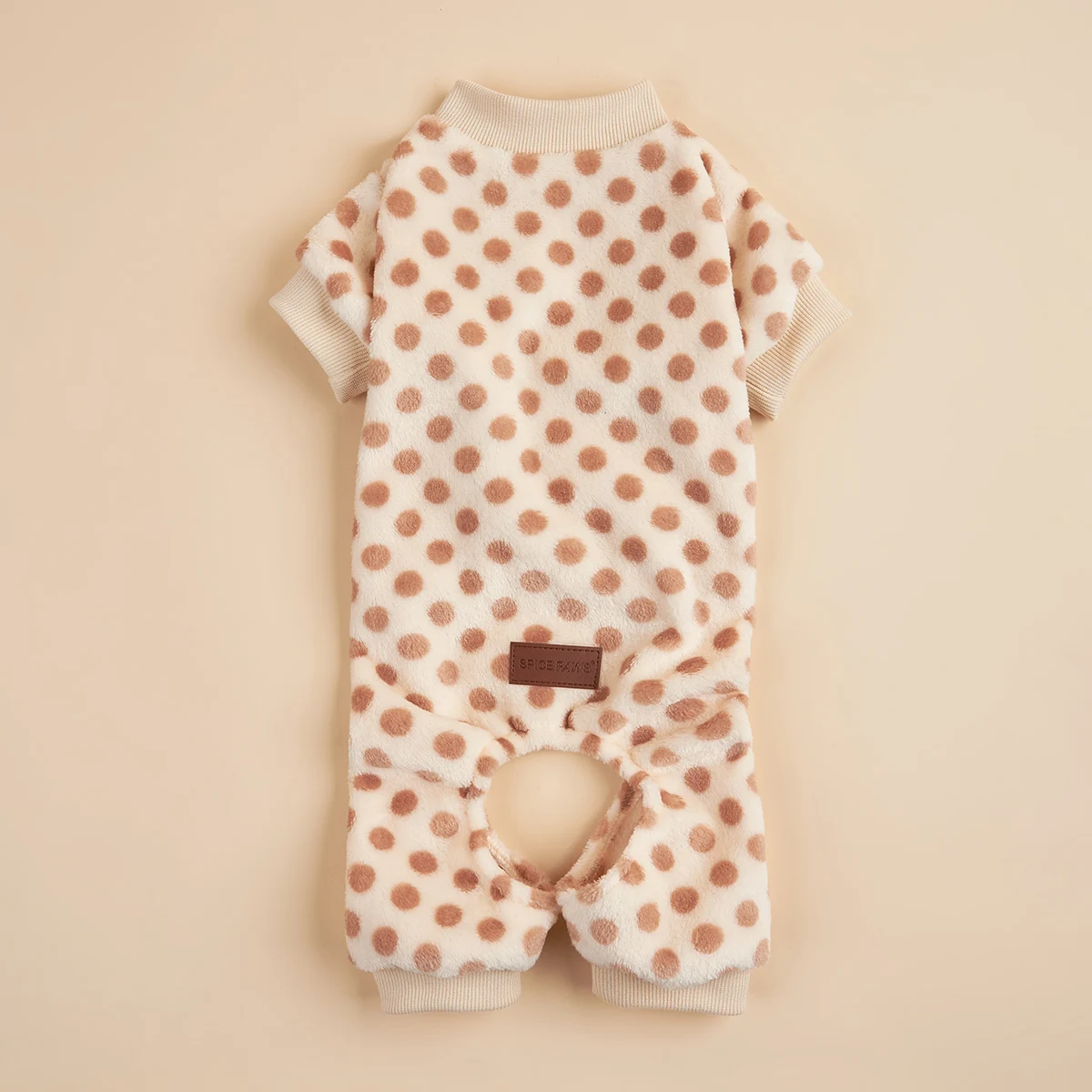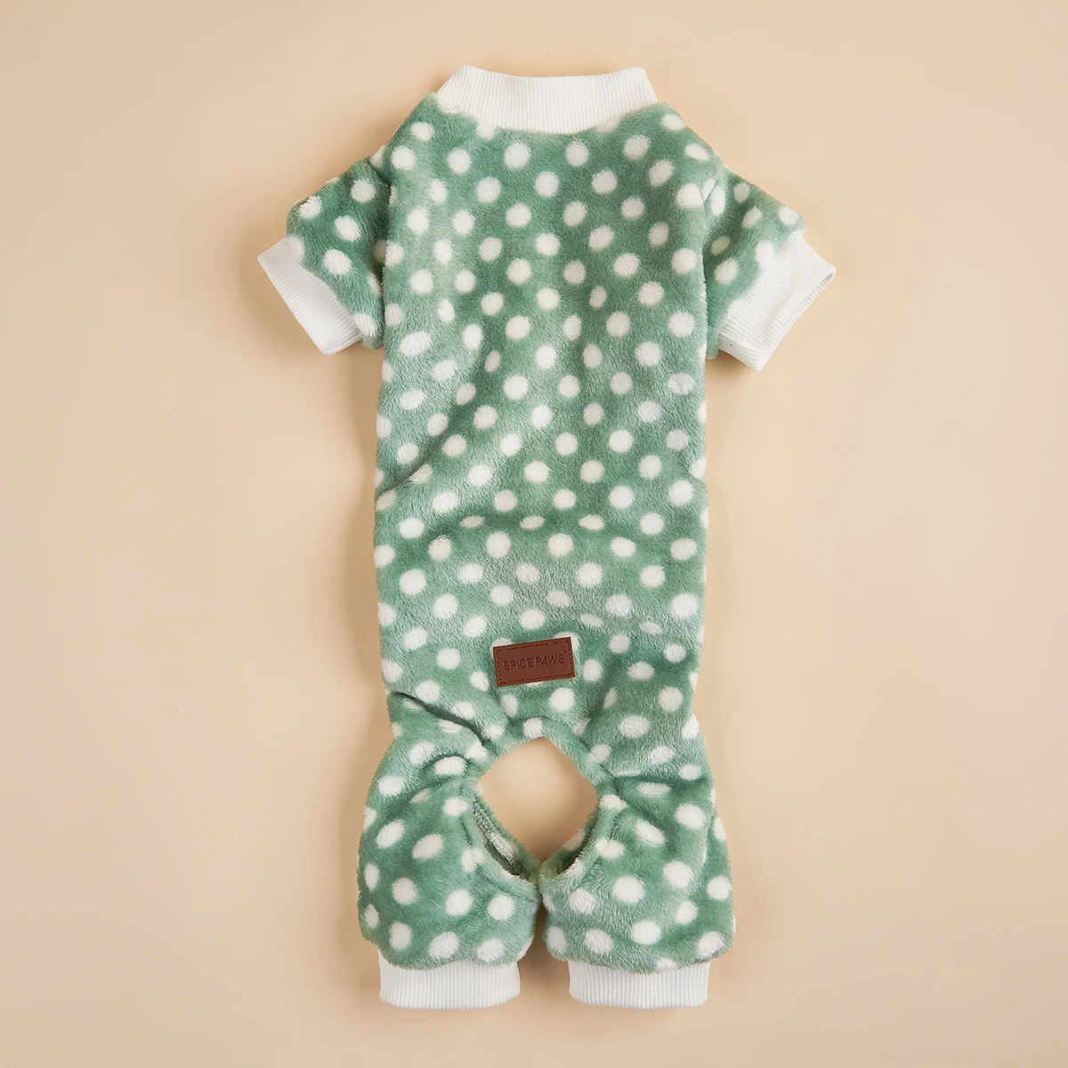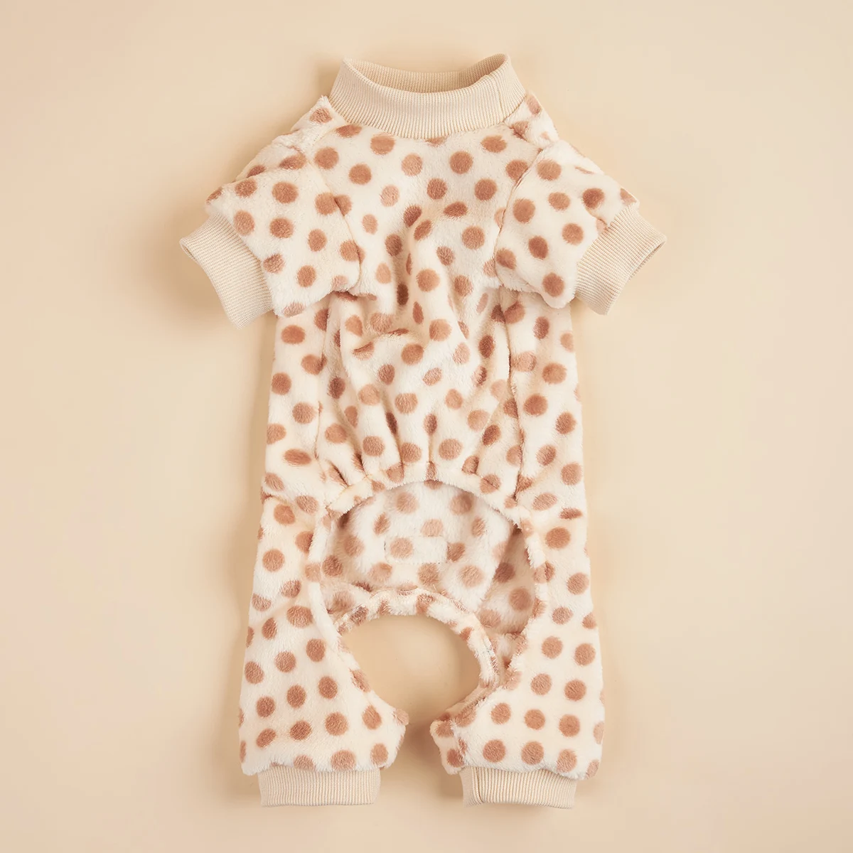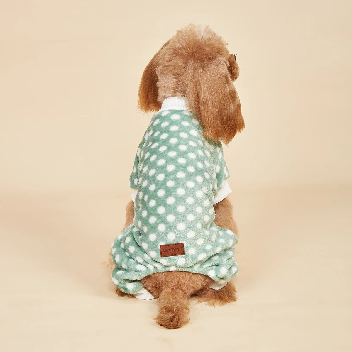 Pijamas de felpa para perros pequeños, ropa cálida de invierno para cachorros, suéter, traje para clima frío, abrigo para perros con lunares, Mono para mascotas A