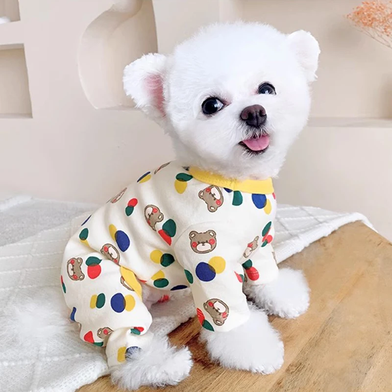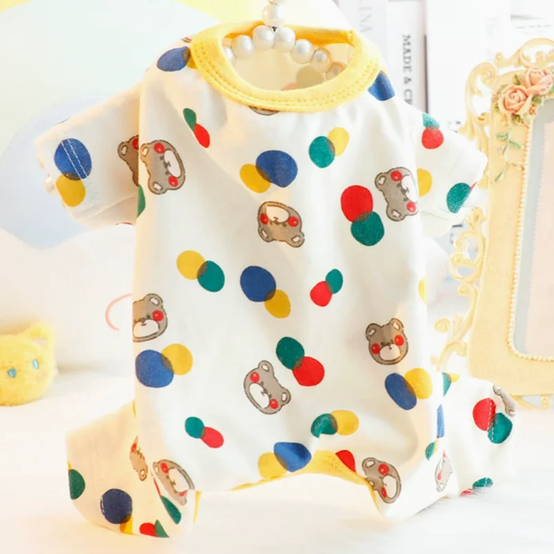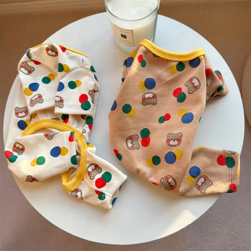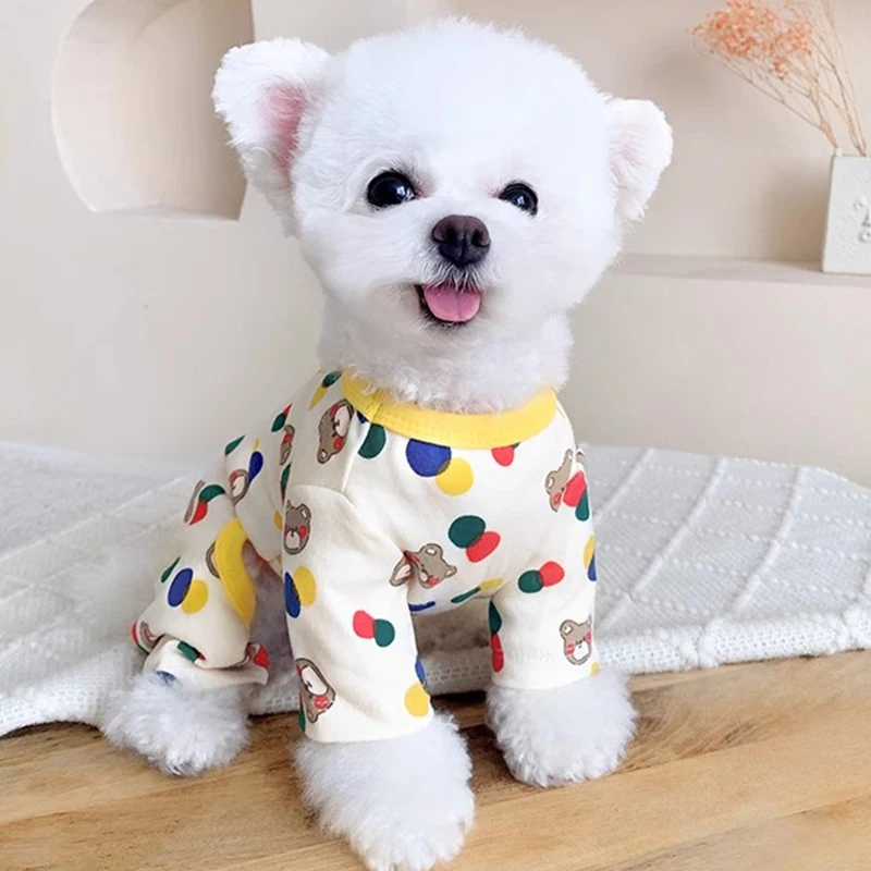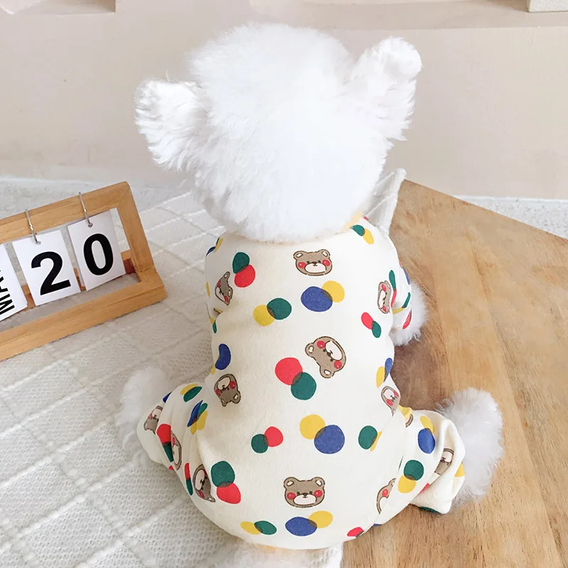 Pijamas para perros, mono bonito con estampado de puntos y osos, ropa fina para primavera y otoño, abrigo para cachorros, camisas para perros Chihuahua Bichon