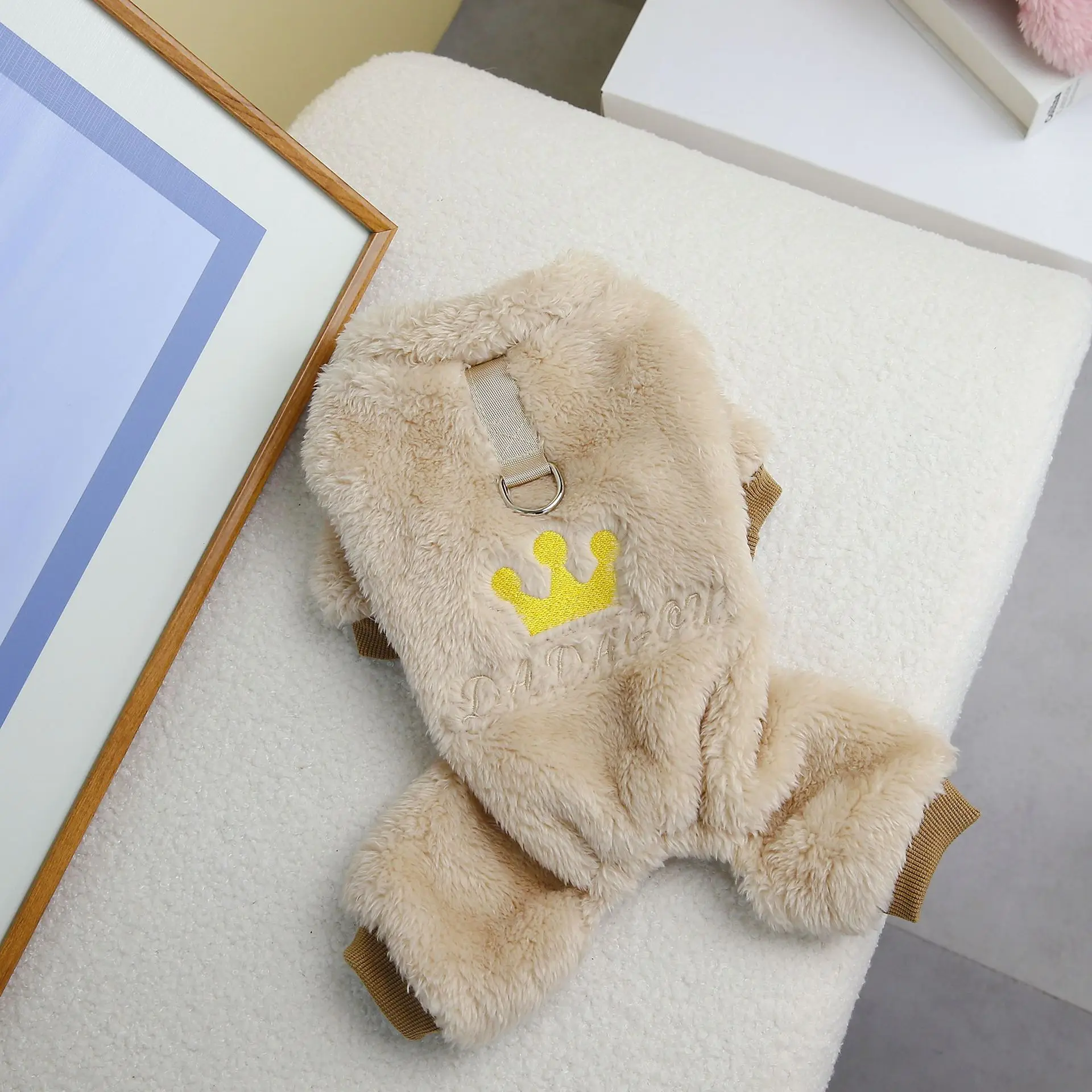 Pijamas gruesos de lana térmica para perros, ropa de invierno, mono peludo, corona para mascotas, suéter de princesa, mono suave para perros pequeños