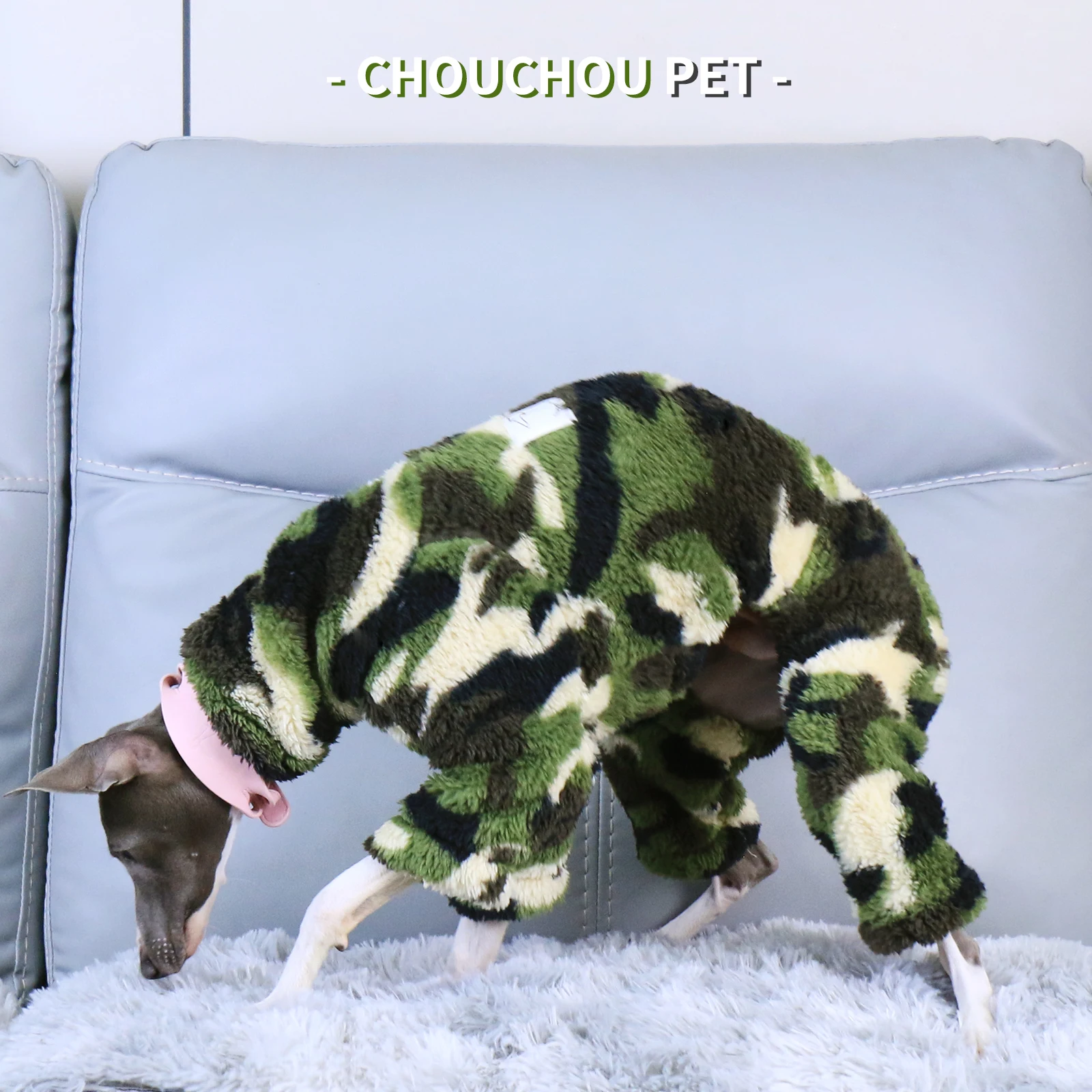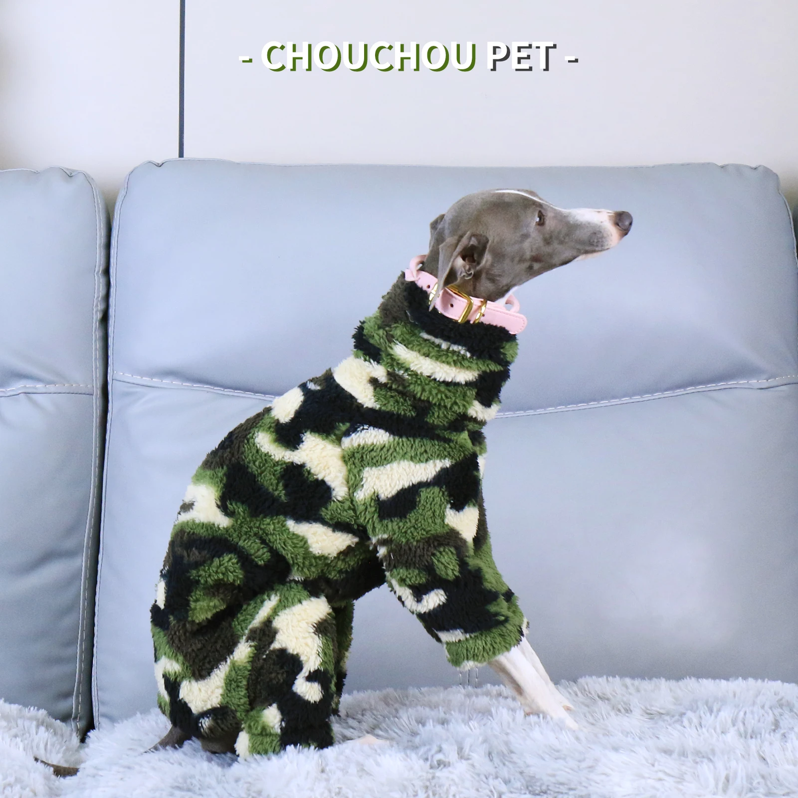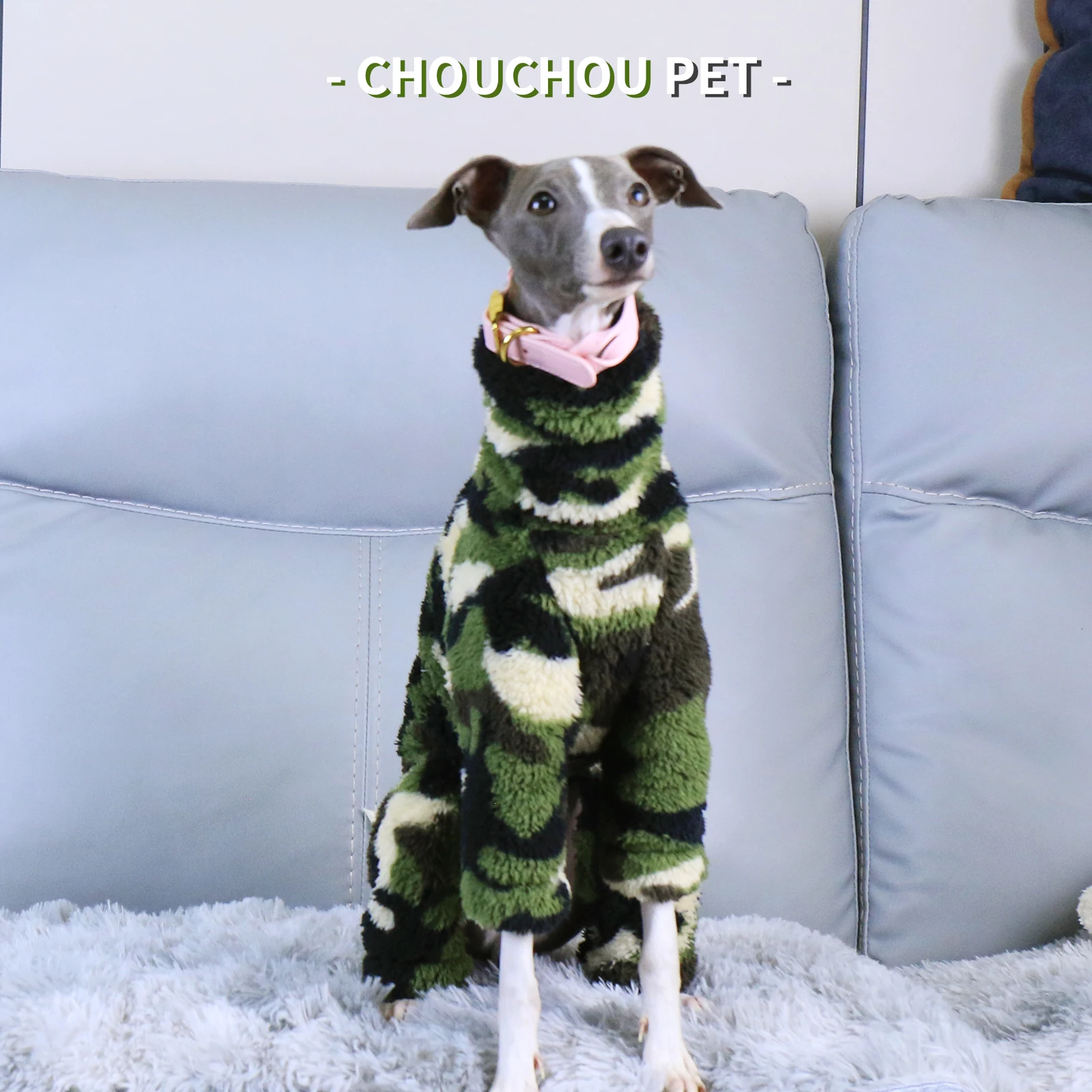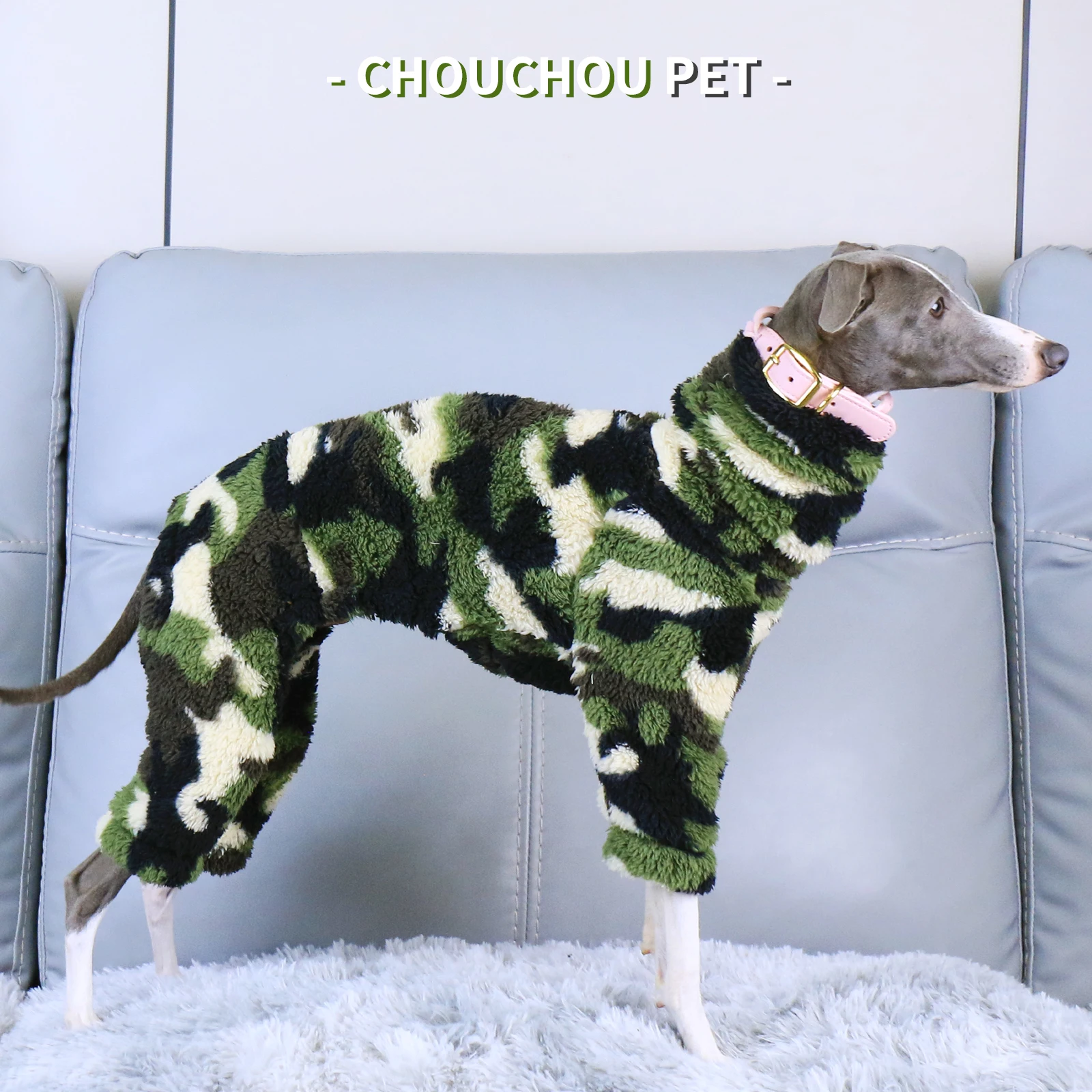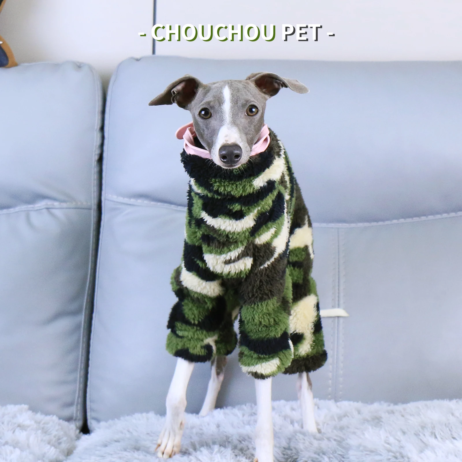 Pijamas de invierno para cachorros, ropa de camuflaje suave y cómoda para perros, cuello alto, ropa cálida para mascotas de piernas largas iggy whippet