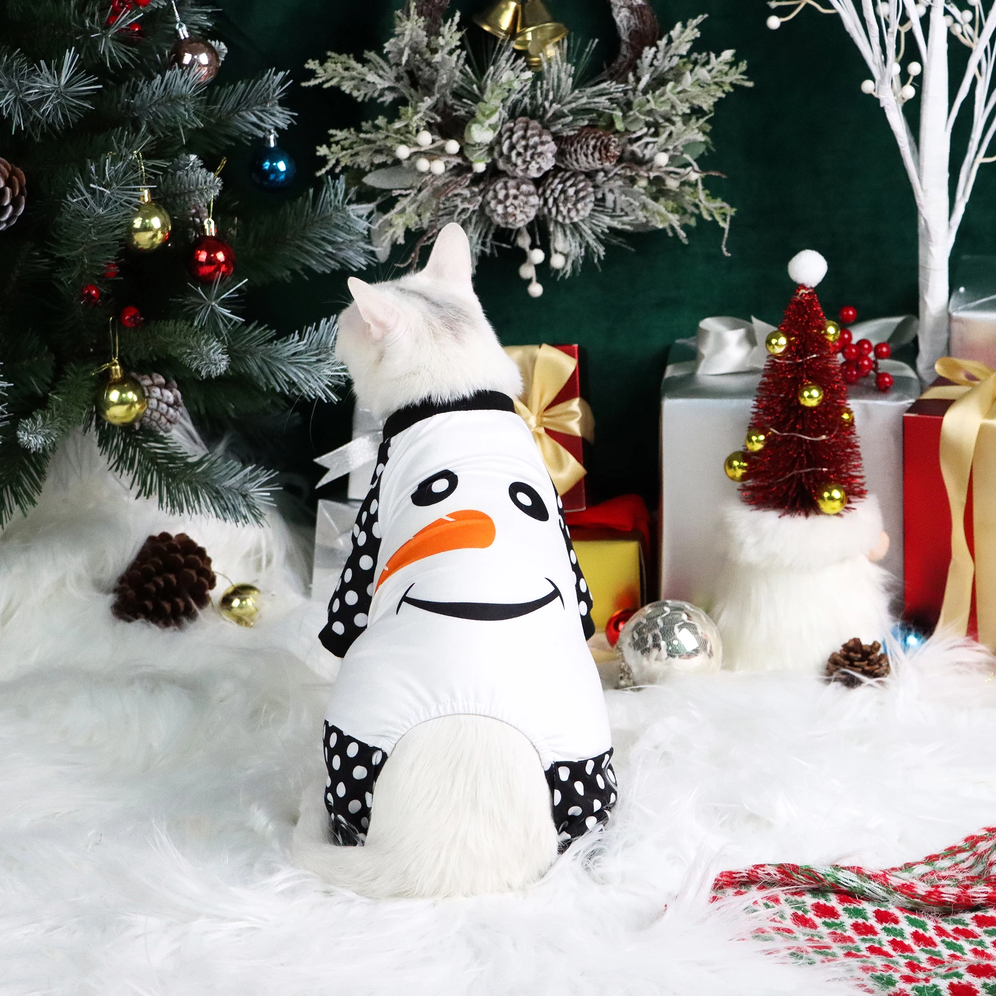 Pijamas navideños para perros, ropa suave de lunares para perros con mono de muñeco de nieve, disfraces para perros pequeños y medianos, aplicación cálida para cachorros y gatos