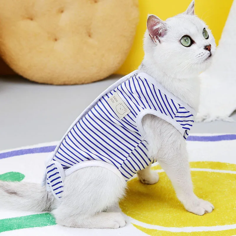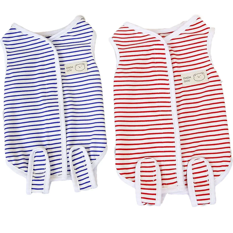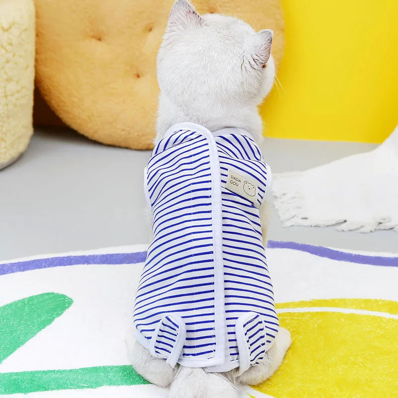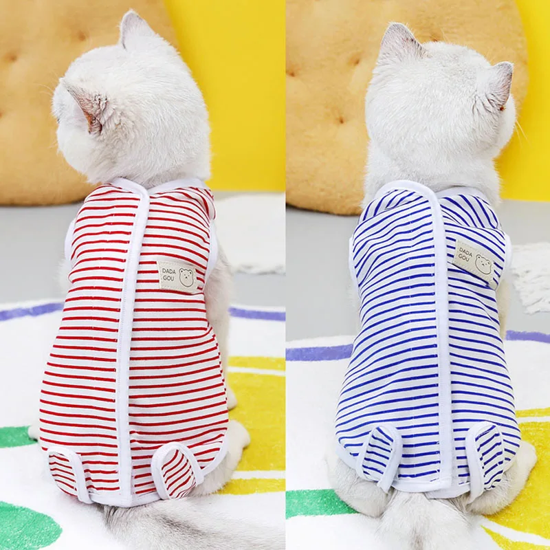 Pijama de perro y gato a rayas, mono, bata quirúrgica para mascotas para niñas, ropa para cachorros, gatitos, mono envuelto para el vientre, pijamas para perros pequeños Yorks