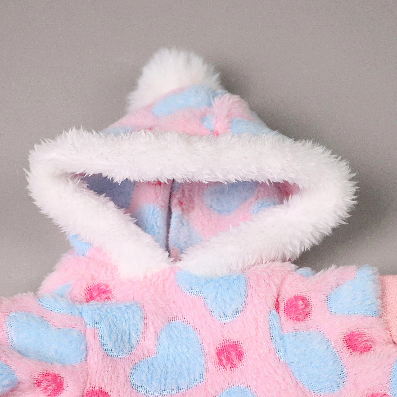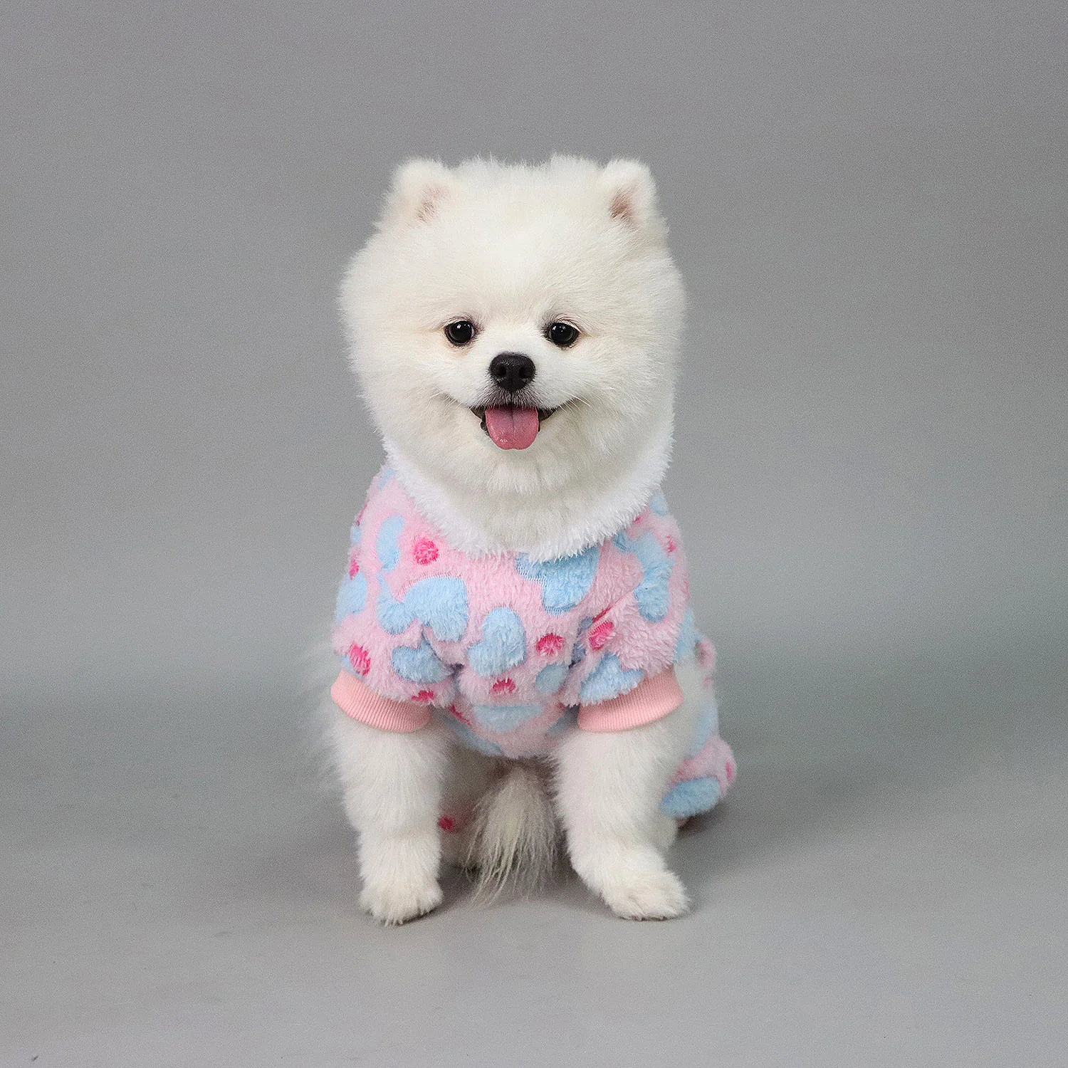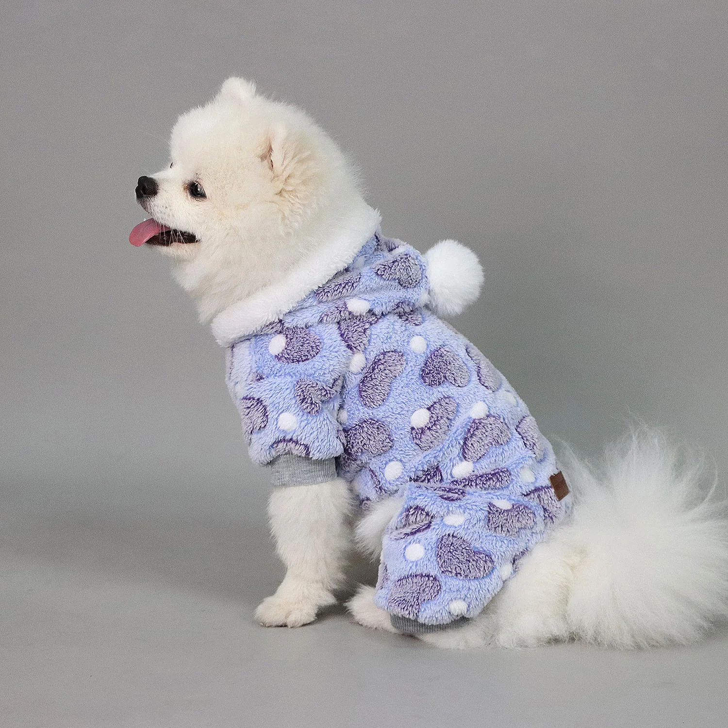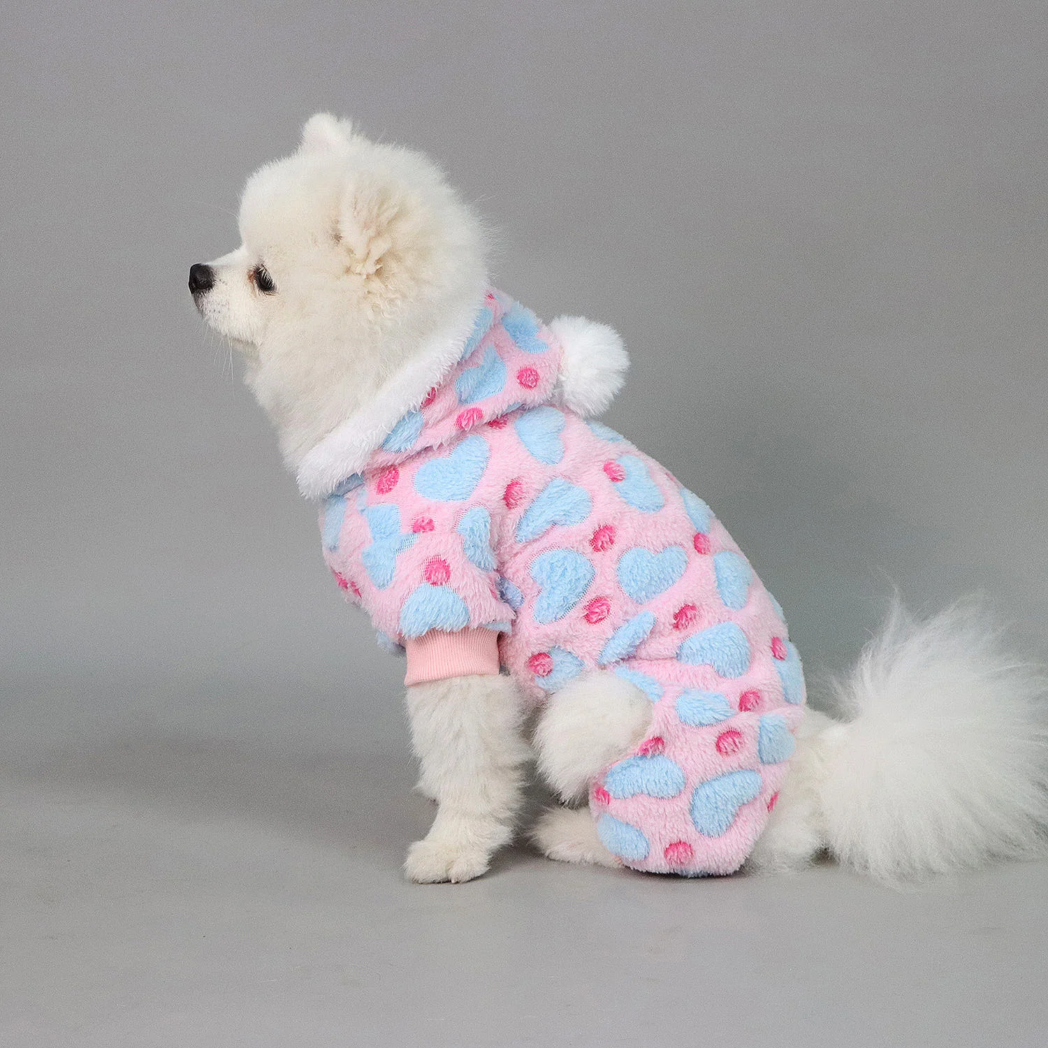 Pijamas de peluche para perros pequeños y niñas, pijamas cálidos de invierno con forma de corazón para cachorros, ropa de lana, suéter, traje para perros con pompón peludo, mono para mascotas