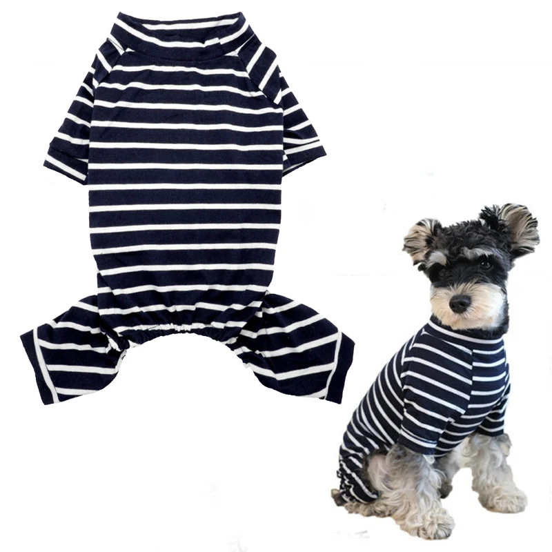 Pijamas de perro a rayas para perros pequeños y medianos, mono suave para cachorros, ropa para perros de primavera y otoño, mono Pjs para cachorros