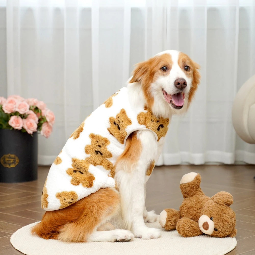 Pijamas de felpa para perro grande de invierno 3XL-8XL, suéter para perro grande con patrón de oso bonito, abrigo con capucha de lana cálido, ropa para mascotas grandes
