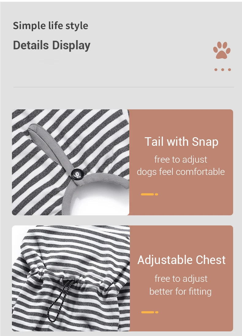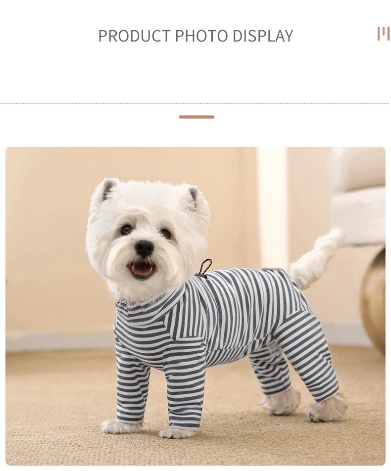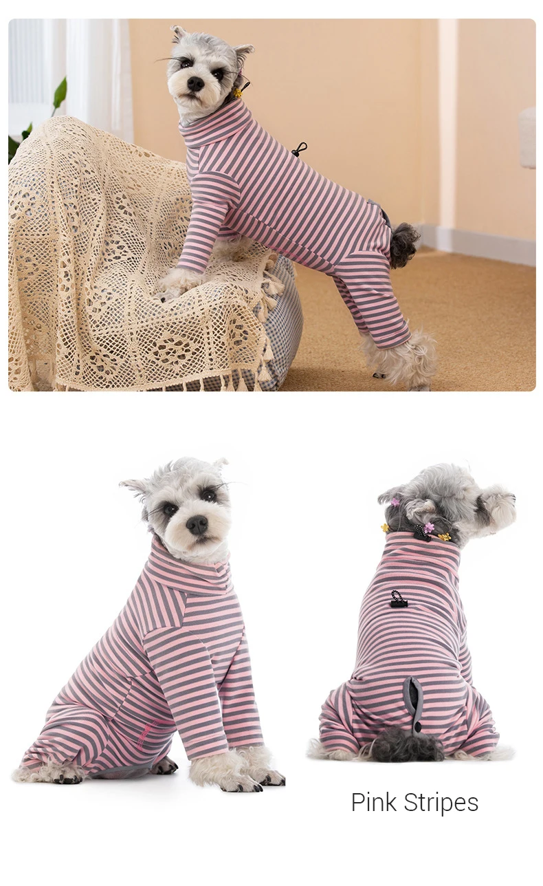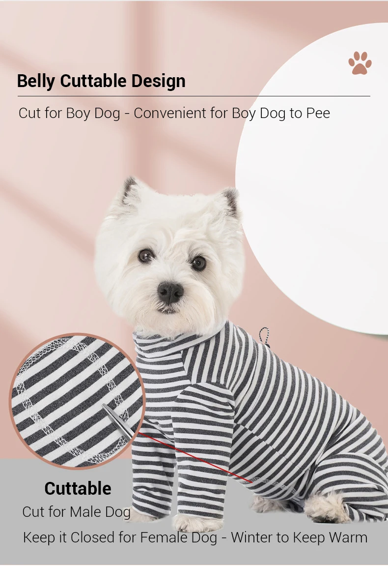 Pijamas para perros, ropa para perros pequeños con estómago completamente cerrado, camisetas interiores de terciopelo cálidas a prueba de viento para mascotas, mono ajustable a rayas para cachorros