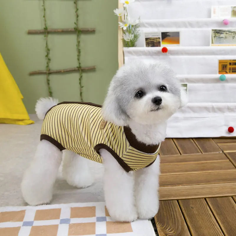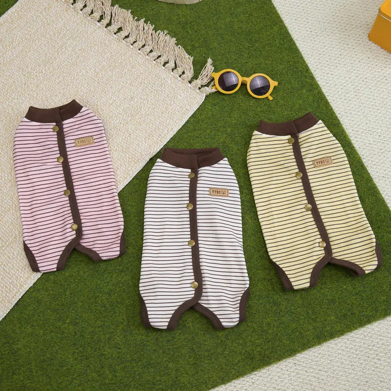 Pijamas de protección con pantalones de cuatro patas a rayas para otoño e invierno, mono cómodo, ropa para cachorros para perros pequeños