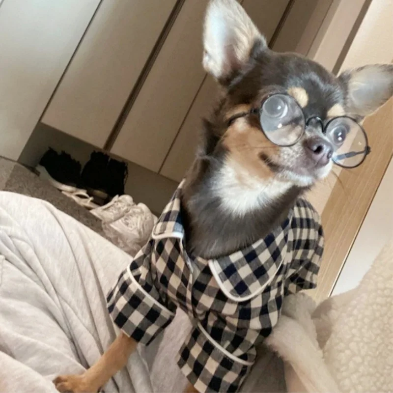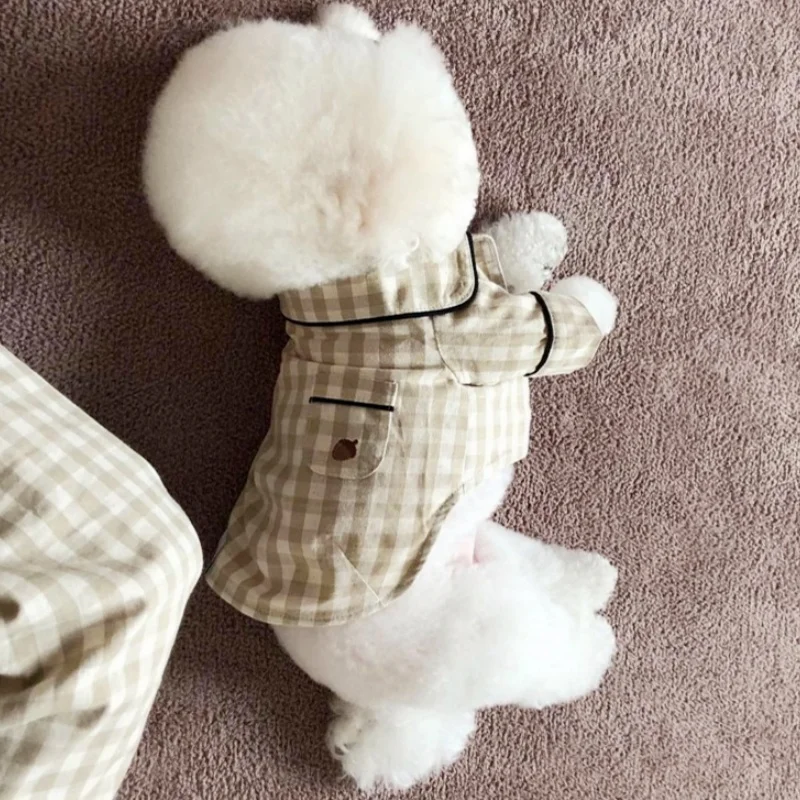 Pijamas suaves y cálidos para perros, ropa de verano para el hogar, camisa para cachorros a la moda, abrigo, camisa a cuadros bonita, chaqueta para mascotas, ropa para caniche Chihuahua