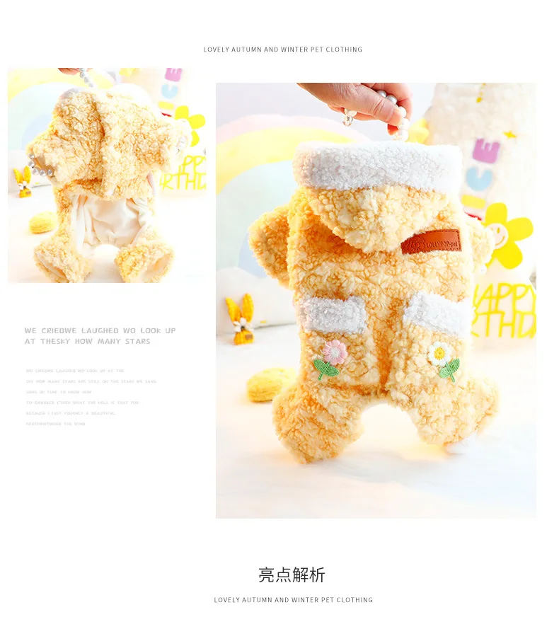 Pijamas de terciopelo para perros, ropa de princesa para perros, abrigo suave y cálido para perros, traje de cuatro patas, mono para cachorros y perros pequeños