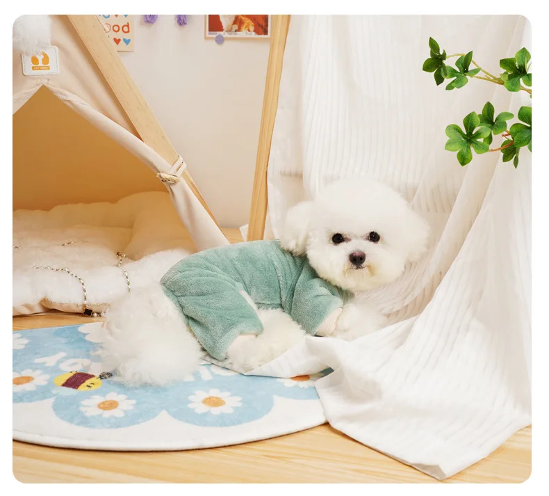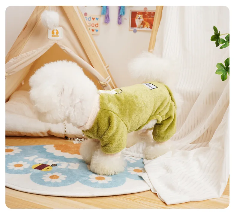 Mono de lana para perros con estampado de conejo y oso, ropa para perros de cuatro patas, abrigo cálido para otoño e invierno, pijamas para mascotas Chihuahua y gatos