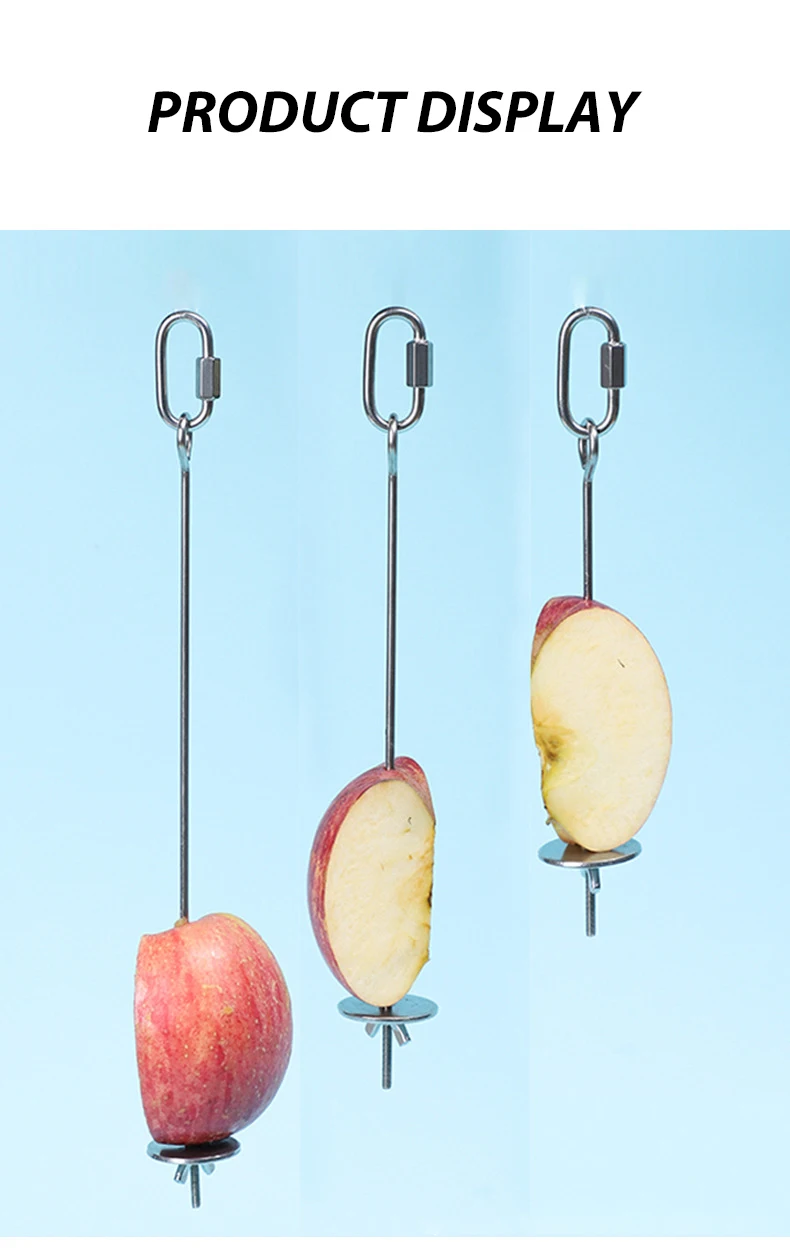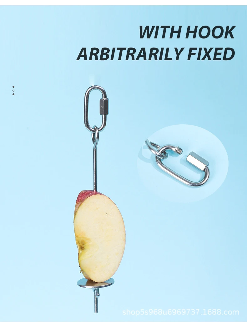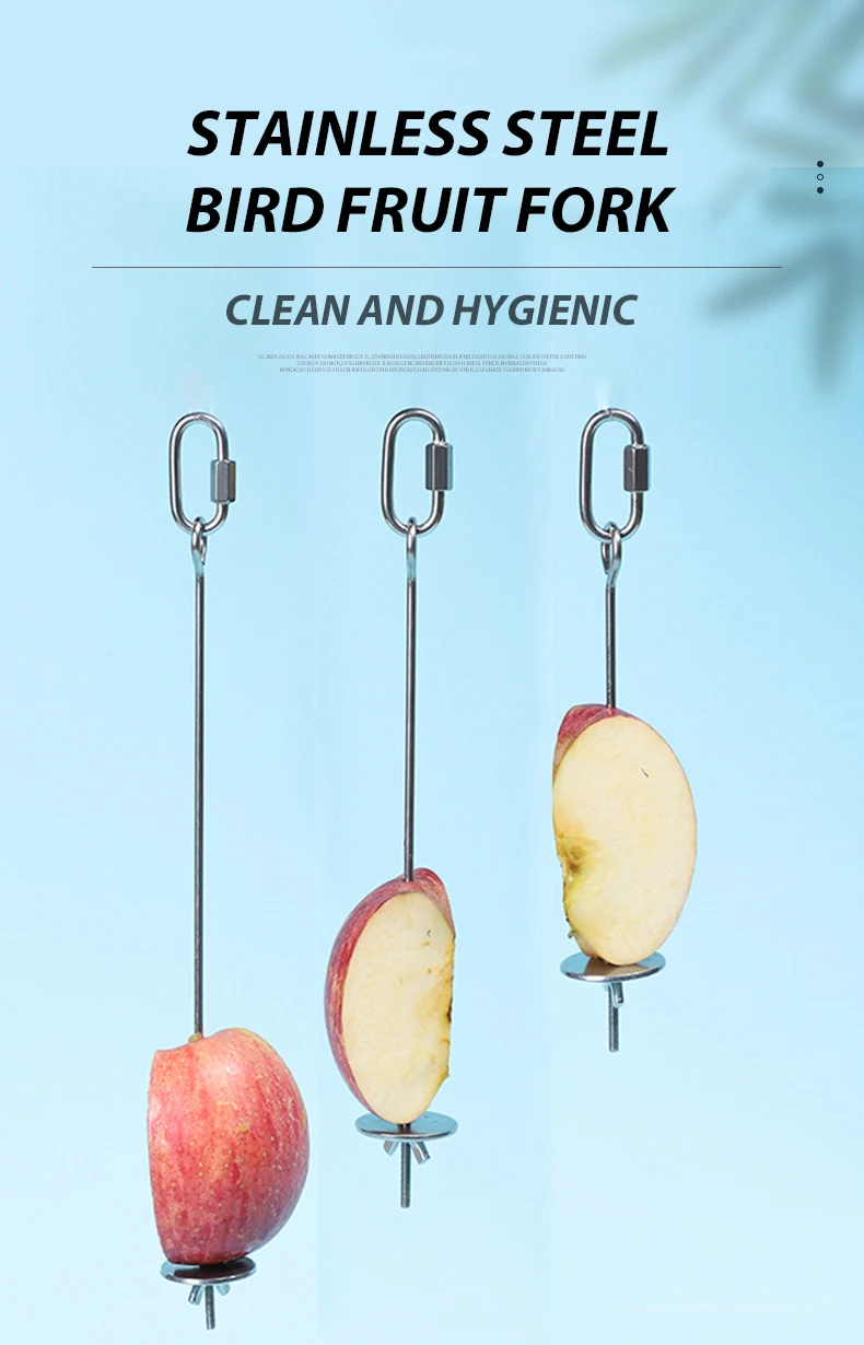 Pincho de juguete para pájaros, soporte colgante de lanza de fruta, mascota, loro, periquito, tenedor de alimentación de carne, palo de acero inoxidable para pincho de verduras