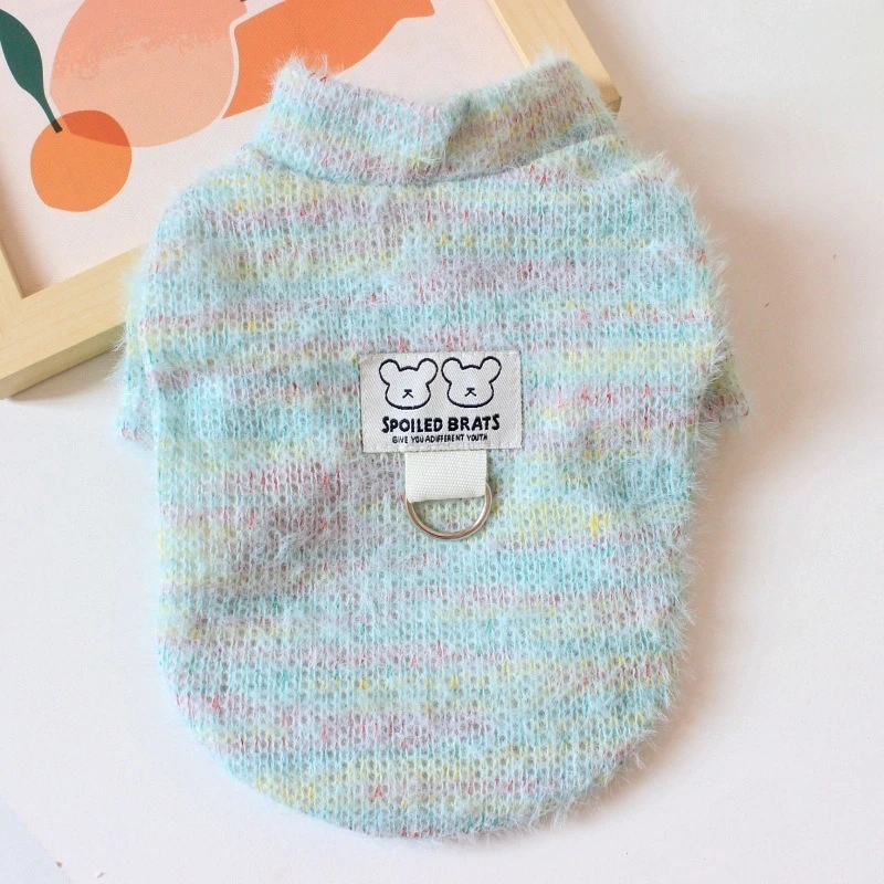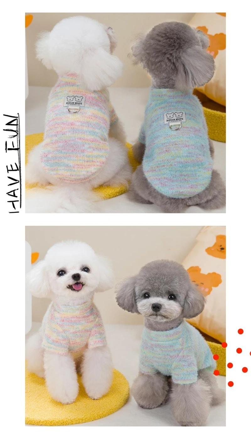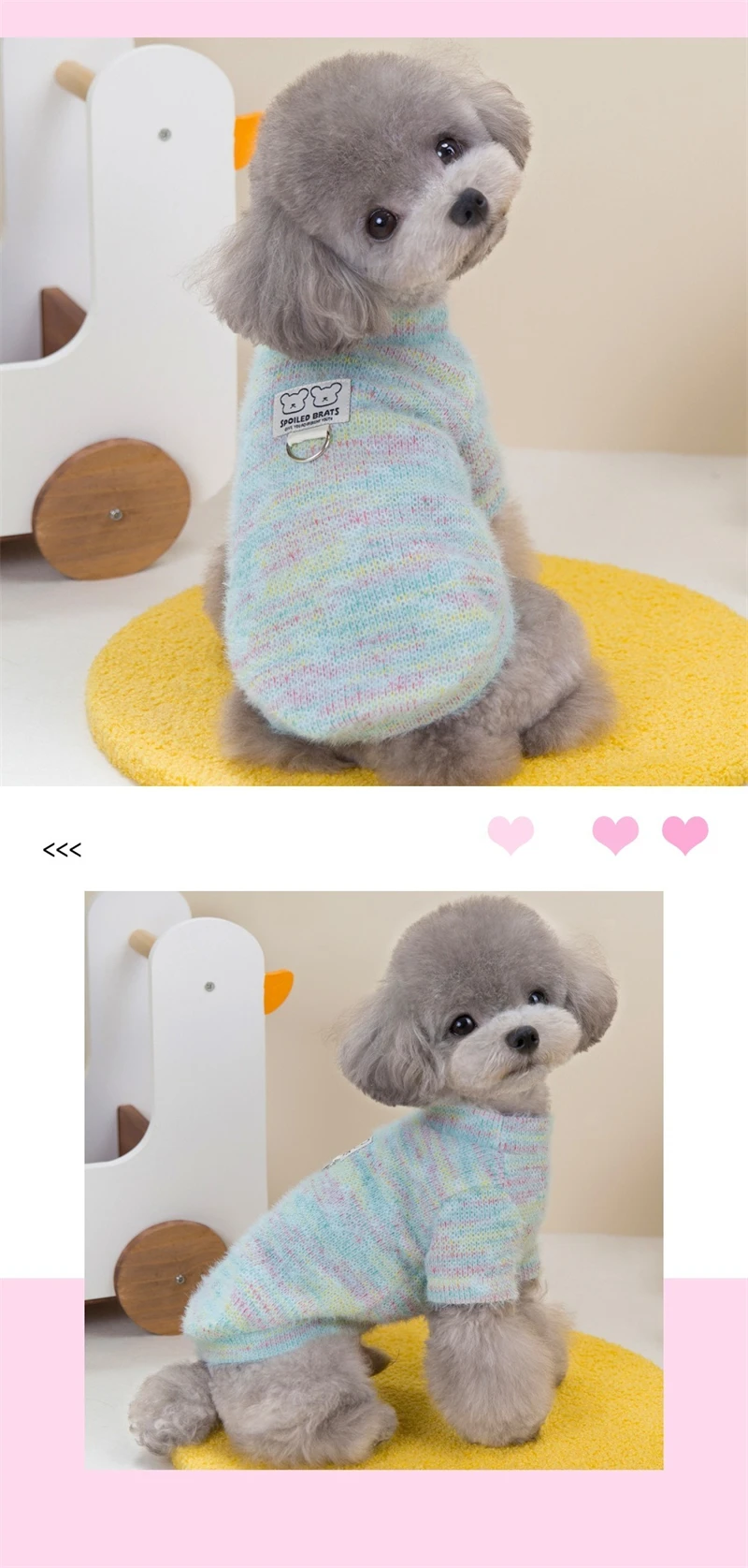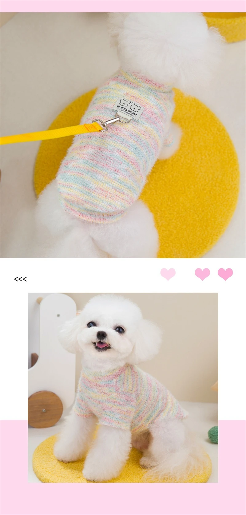 Pink Rainbow Clothing for Cats Short Sleeve Warm Pet Dog Sweaters Knitting Coat New Year Small Medium Puppy Autumn Sweatshirts