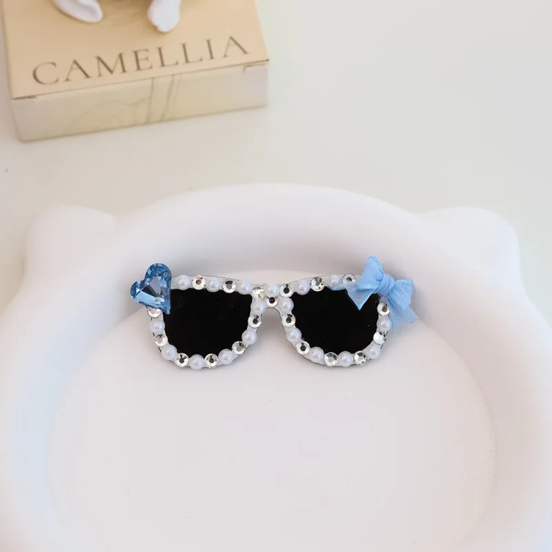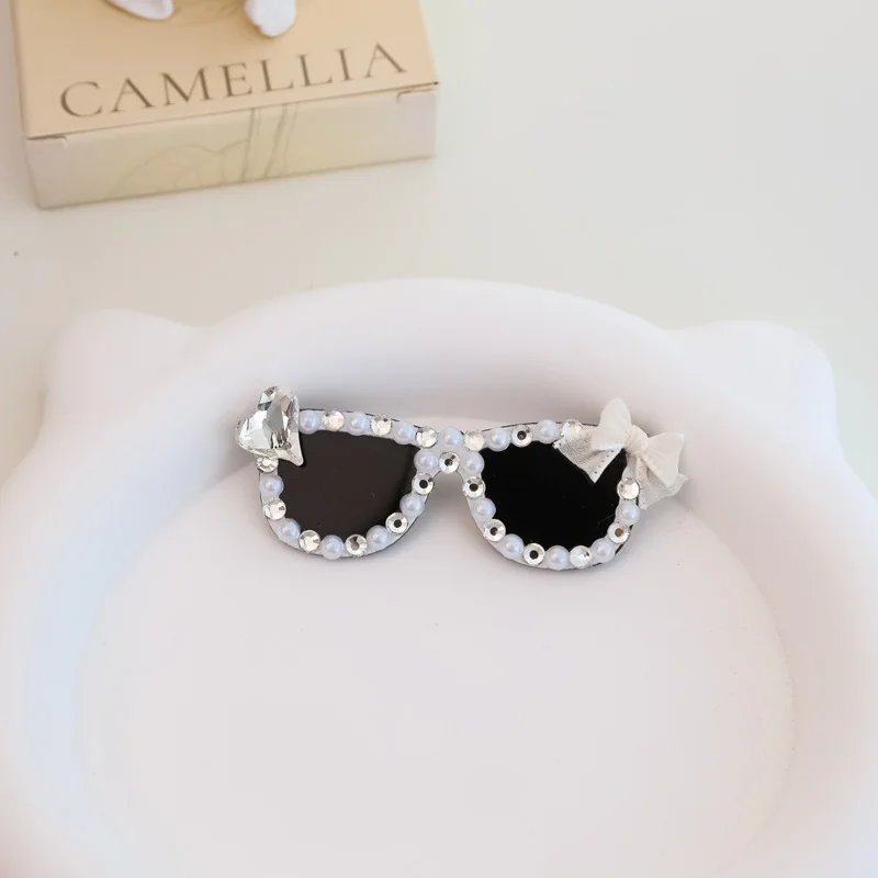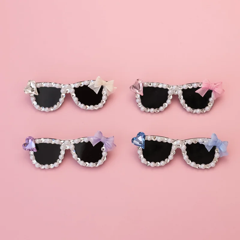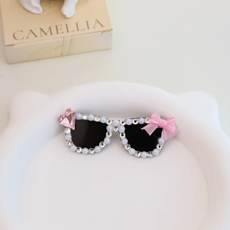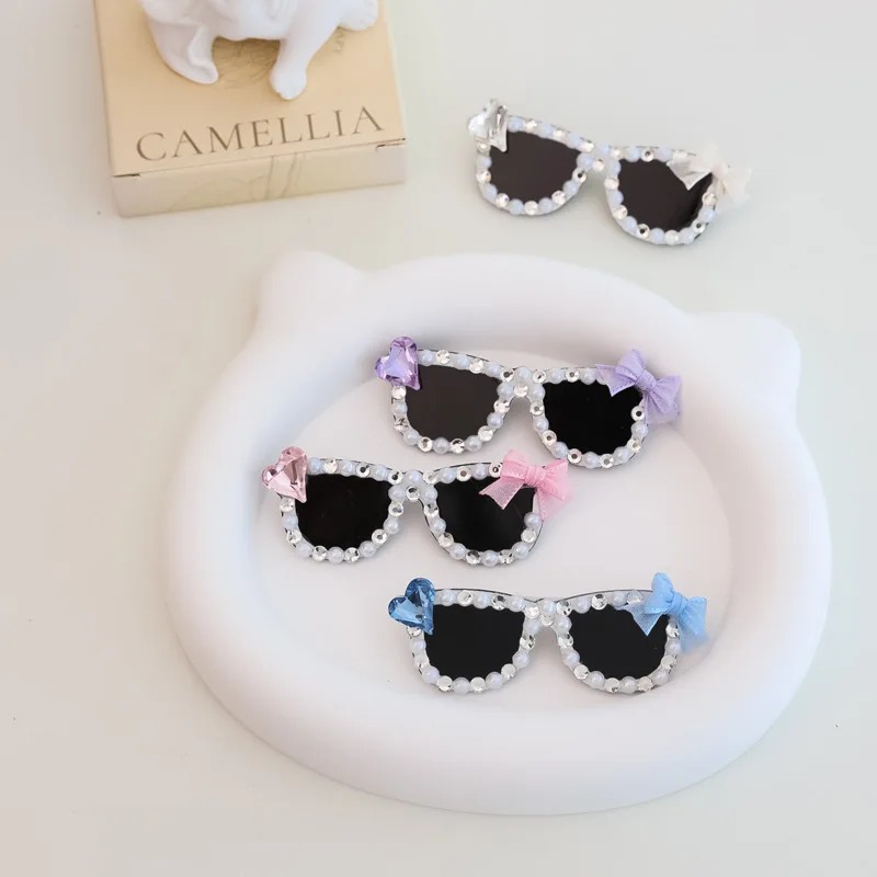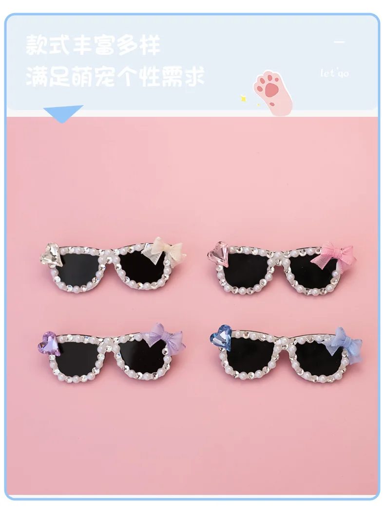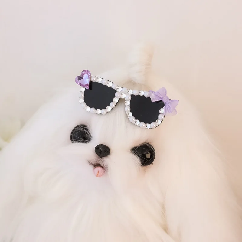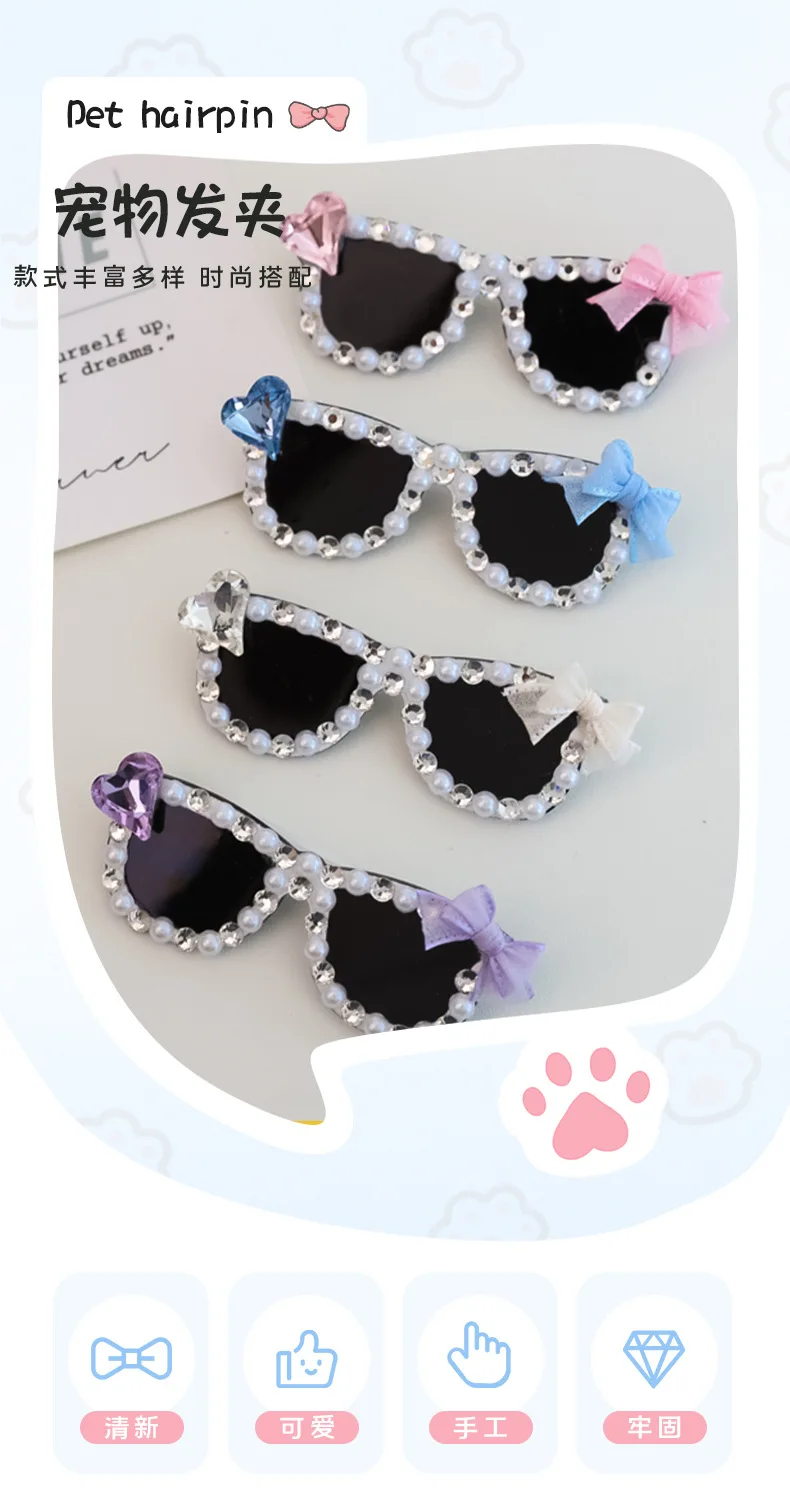 Pinza para el pelo rota con diamantes brillantes hecha a mano para mascotas, gafas de sol con diamantes de imitación para perros pequeños y maltés, accesorios para cachorros