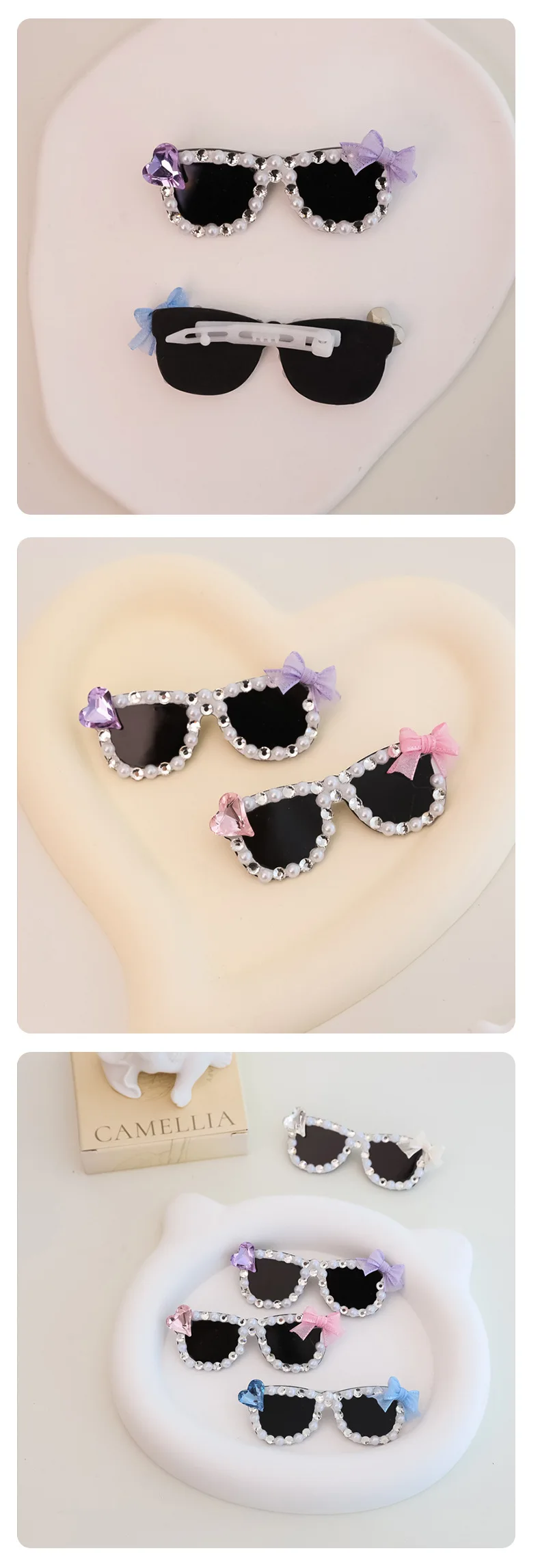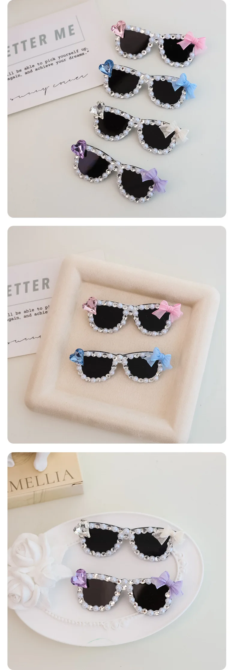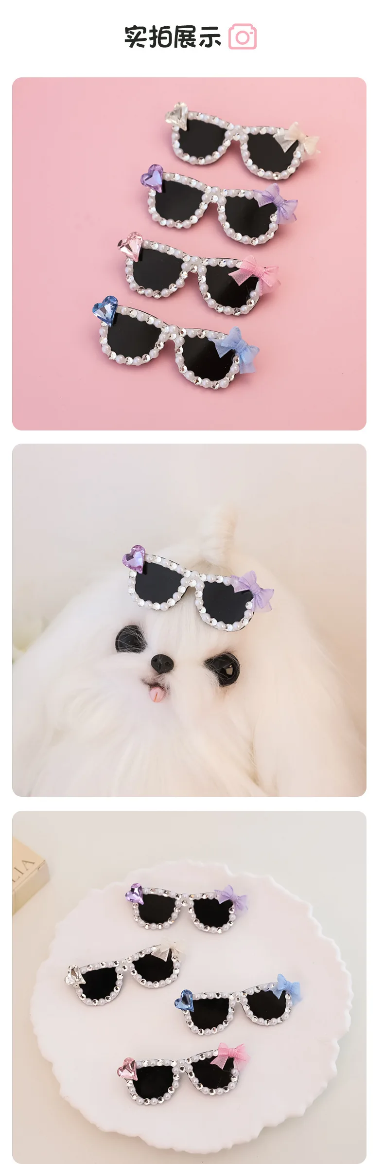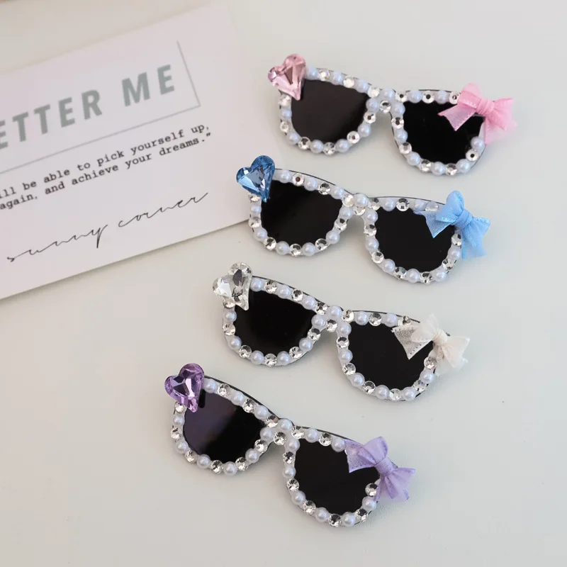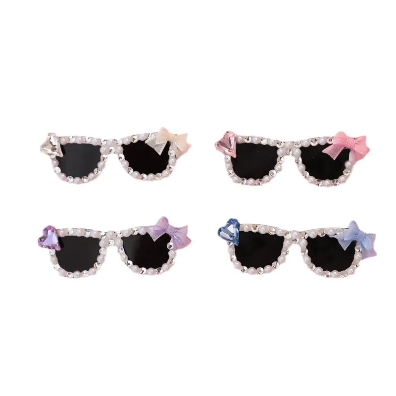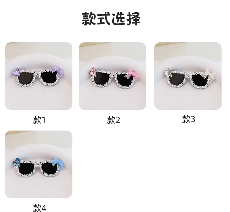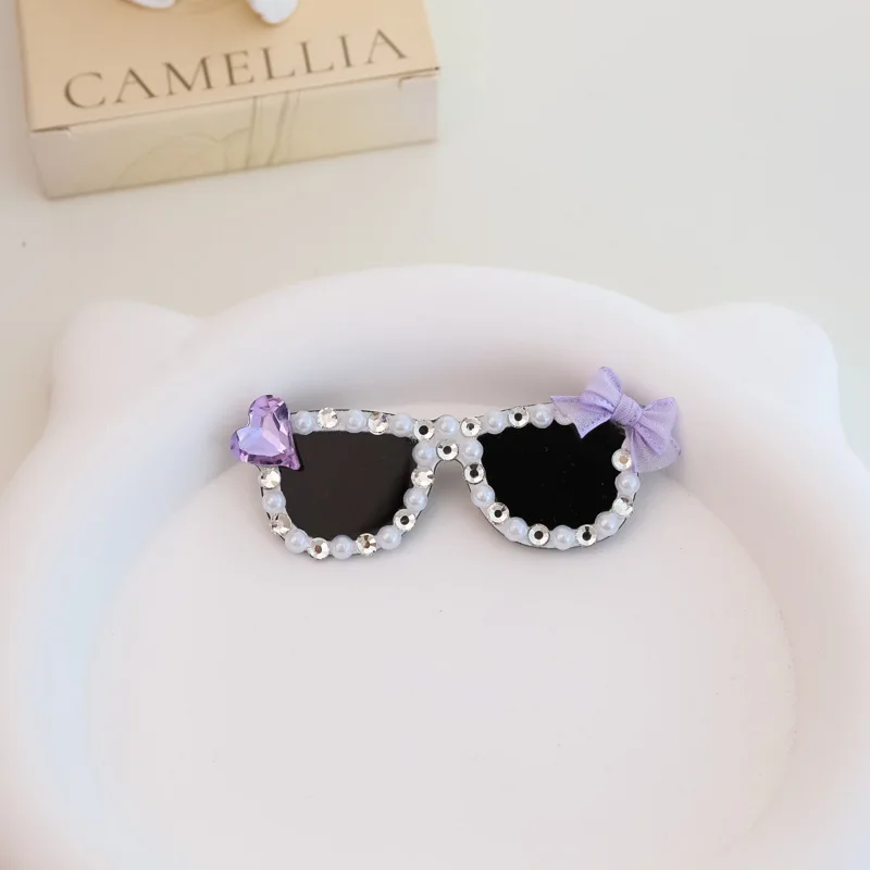 Pinza para el pelo rota con diamantes brillantes hecha a mano para mascotas, gafas de sol con diamantes de imitación para perros pequeños y maltés, accesorios para cachorros