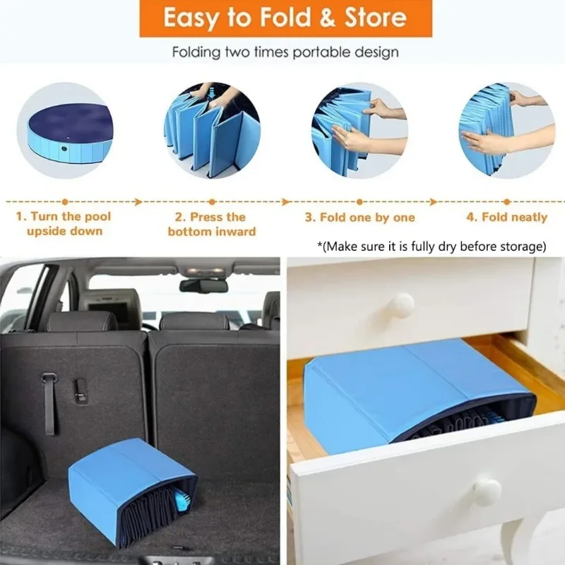 Simple y conveniente: diseño plegable fácil de almacenar, excelente diseño Material del producto: el producto está hecho de material de PVC, placa de compresión de alta resistencia, duradero. Fácil de limpiar: use el diseño de agua limpia tipo espiral solo necesita desenroscar la tapa después de su uso, limpie automáticamente el agua.