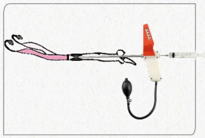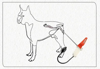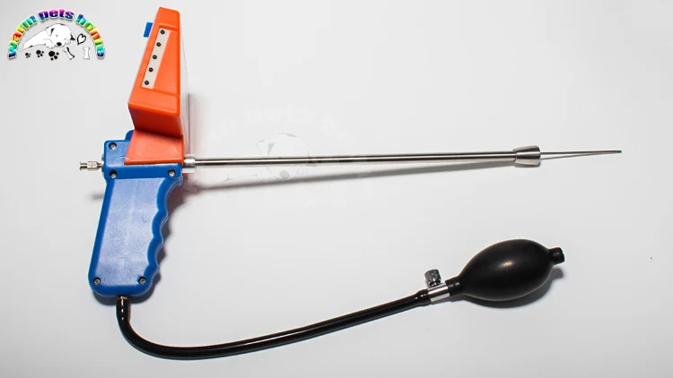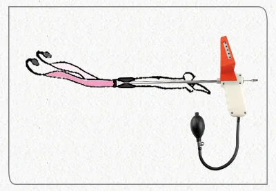1. Coloque la pistola de inseminación visual en un ángulo de 45 grados e insértela lentamente en la vagina de la perra. La pistola de inseminación se eleva hacia arriba.