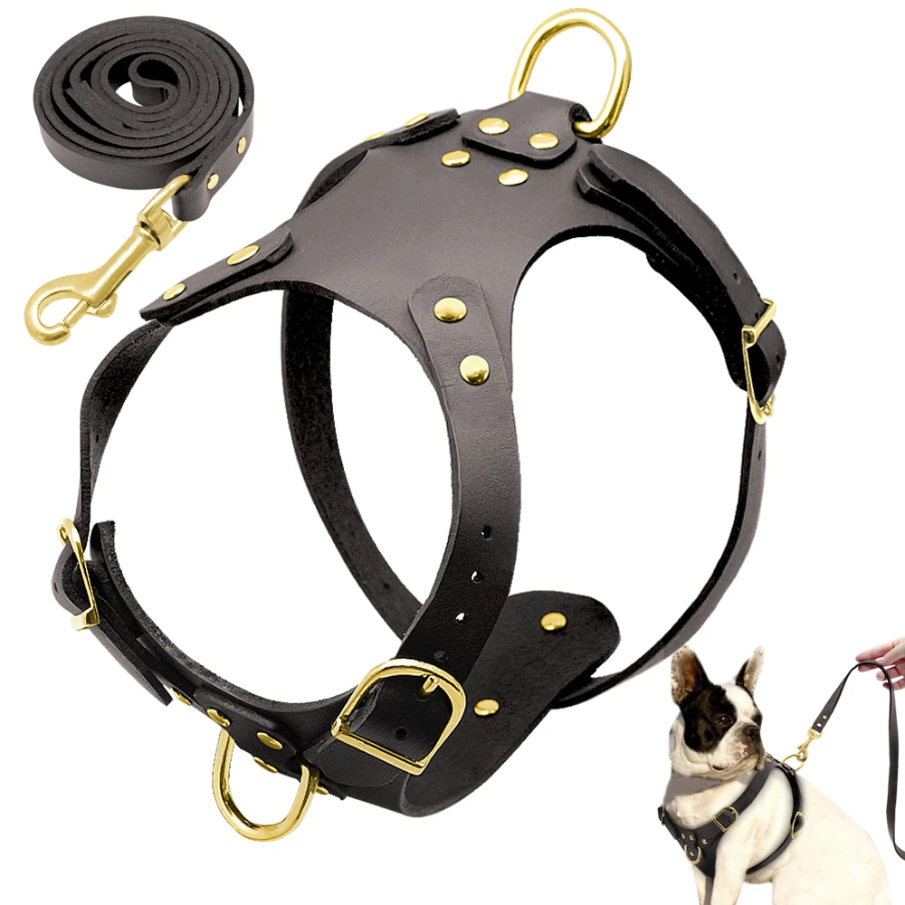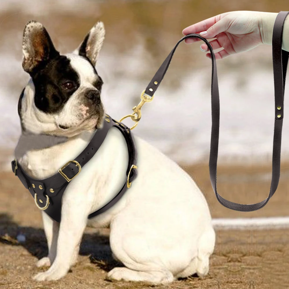 Nombre: Arnés para perros Pit Bull, juego de correa sin tirones, arneses de cuero genuino para perros, arnés para mascotas, chaleco de plomo para