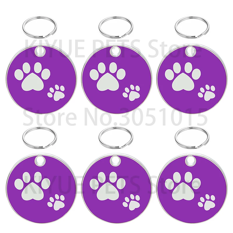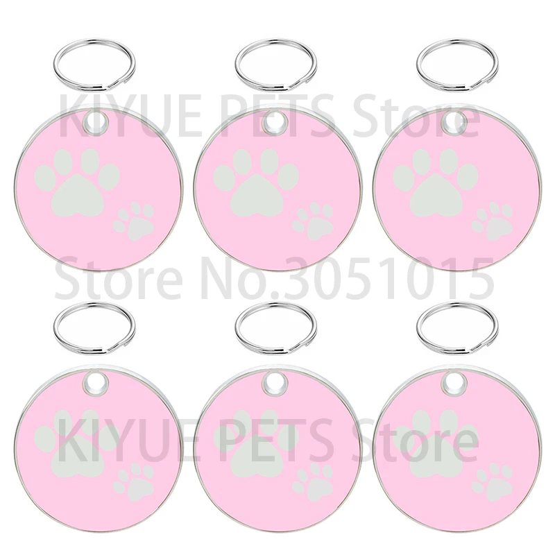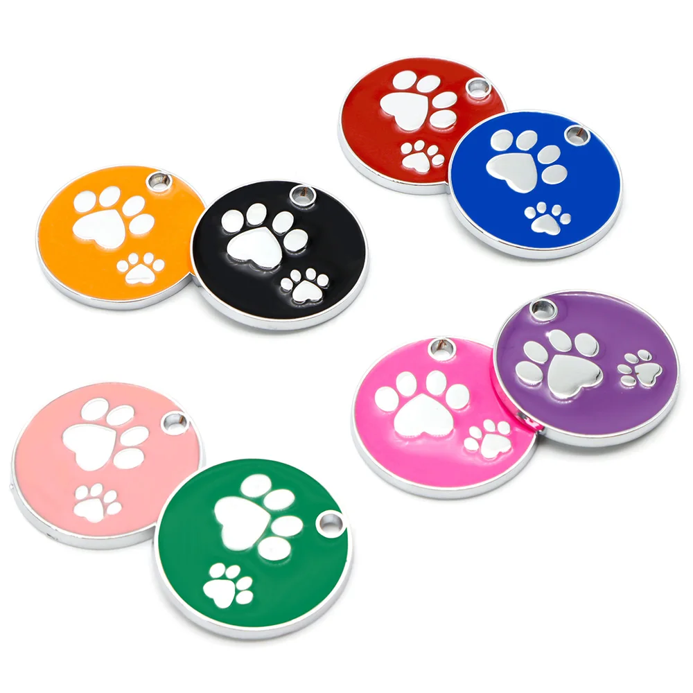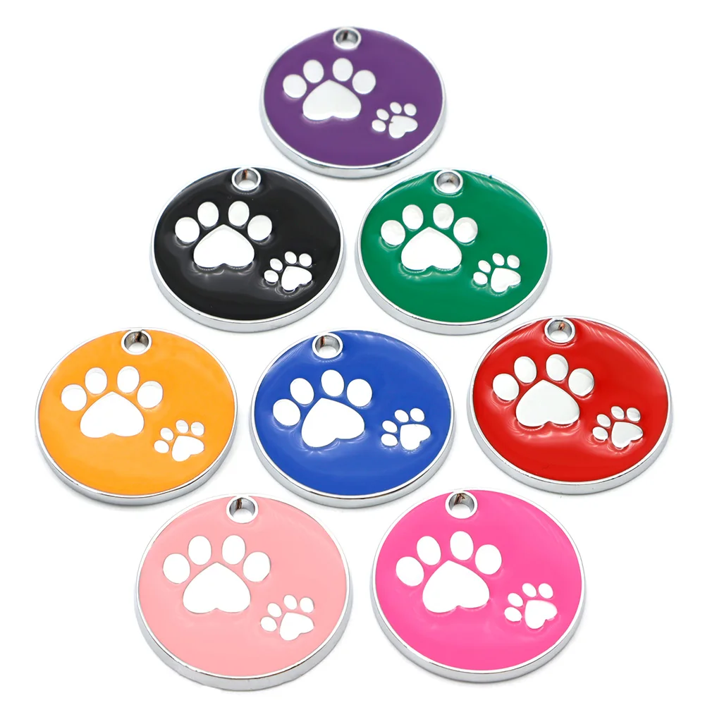 20Pcs Round Paw Metal Dog Tag Pet Anti-Lost Identity Plate Color Lettering Blank Pendant Collar Accessories Back Home Dropping