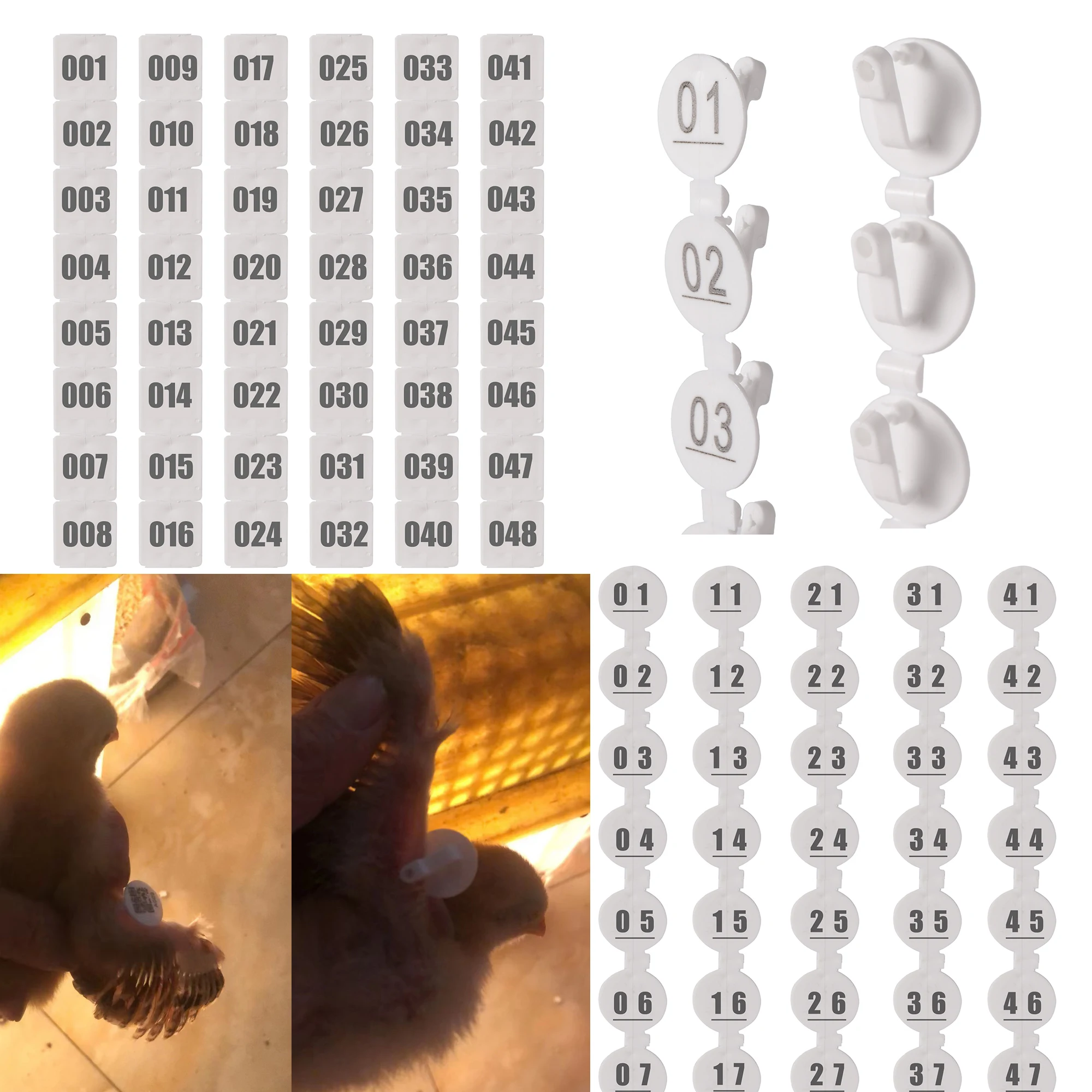 Placa de identificación de números de alas de pollito para codorniz, paloma, número de ala de ave, placa de número de ala de pollo redonda/cuadrada NO.01 ~ 50
