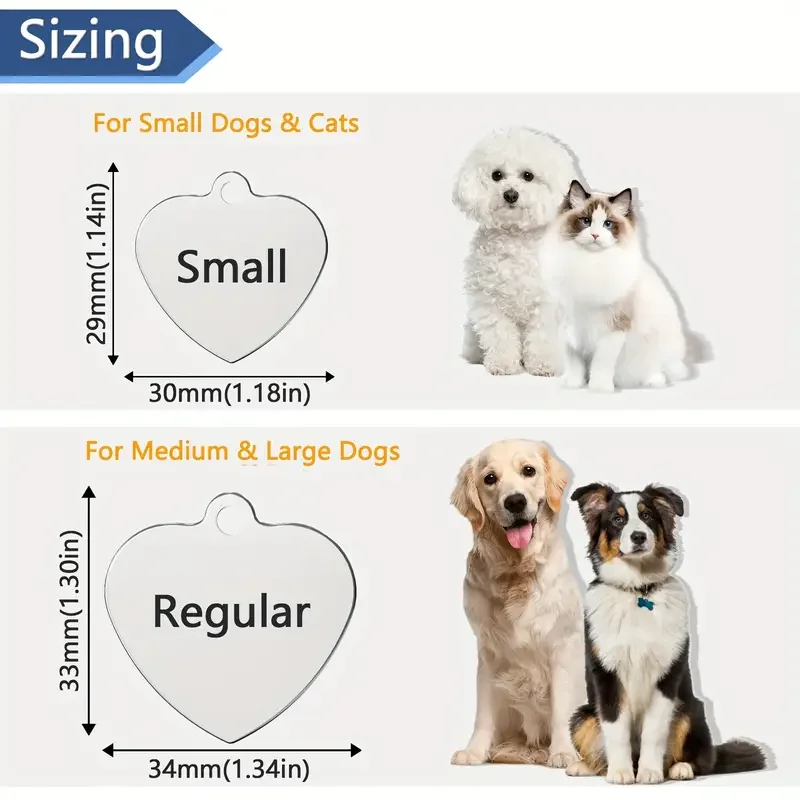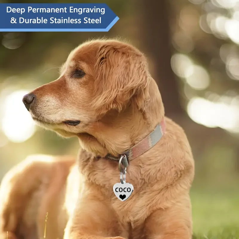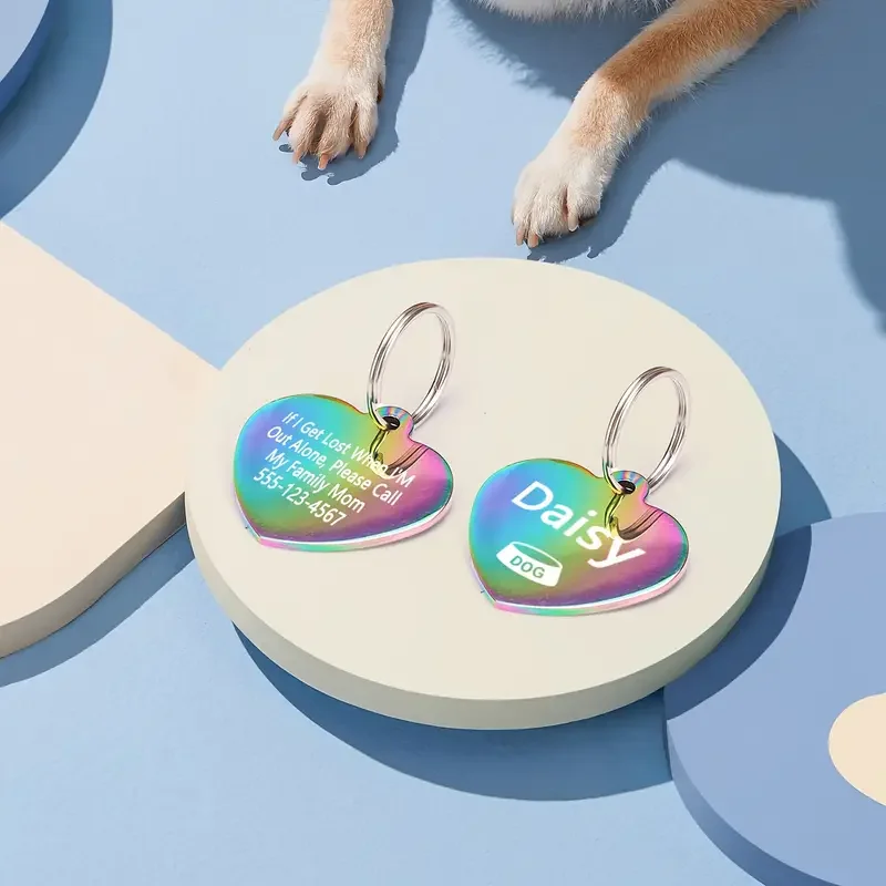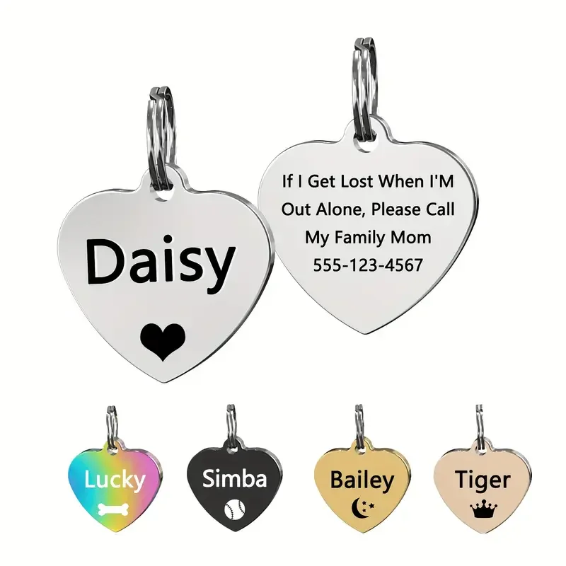 Placa de identificación de perro con forma de corazón, etiqueta de identificación personalizada para mascota, grabado antipérdida para collar de número de nombre de gato, accesorio de etiqueta
