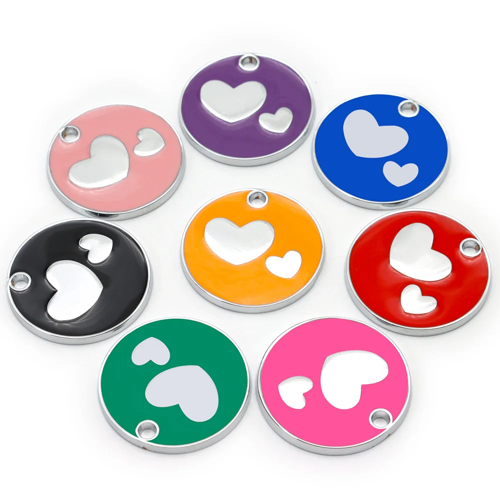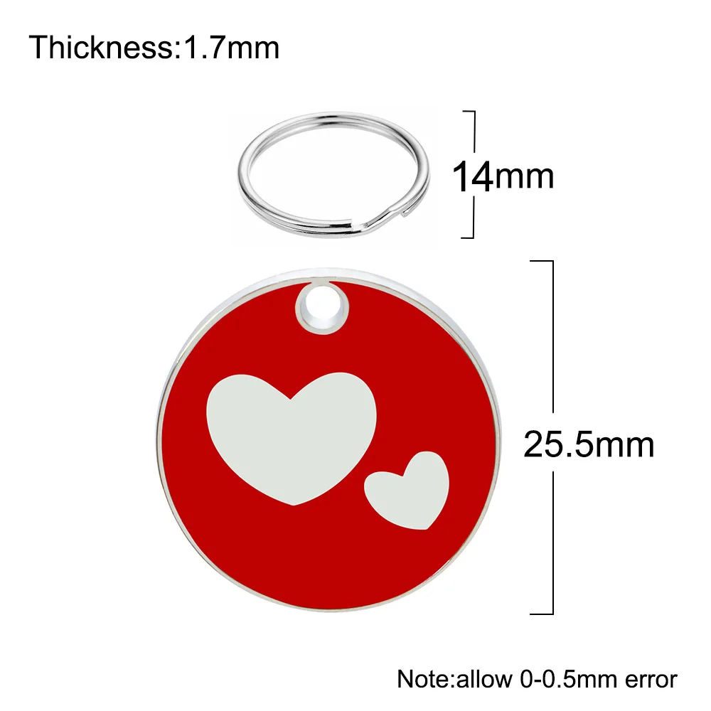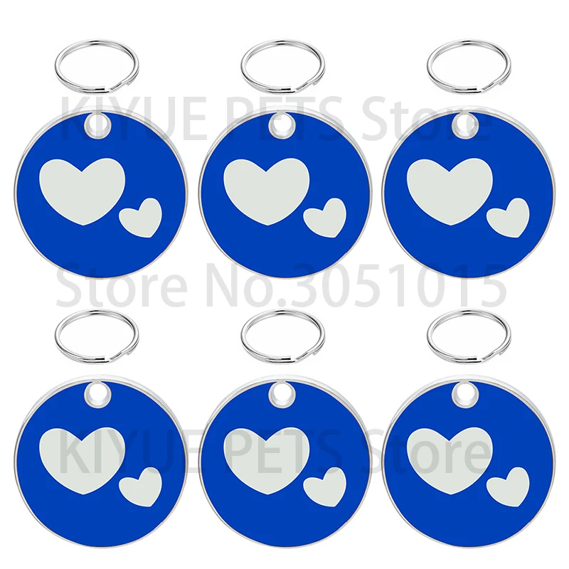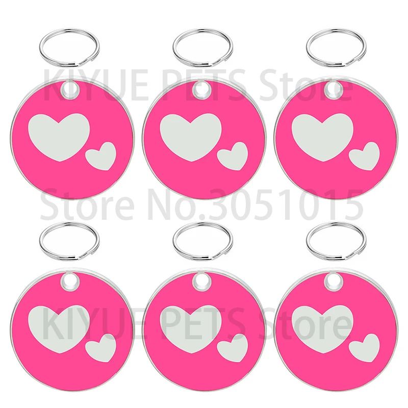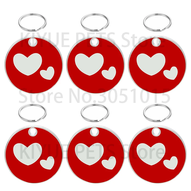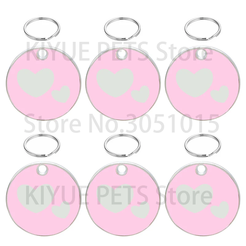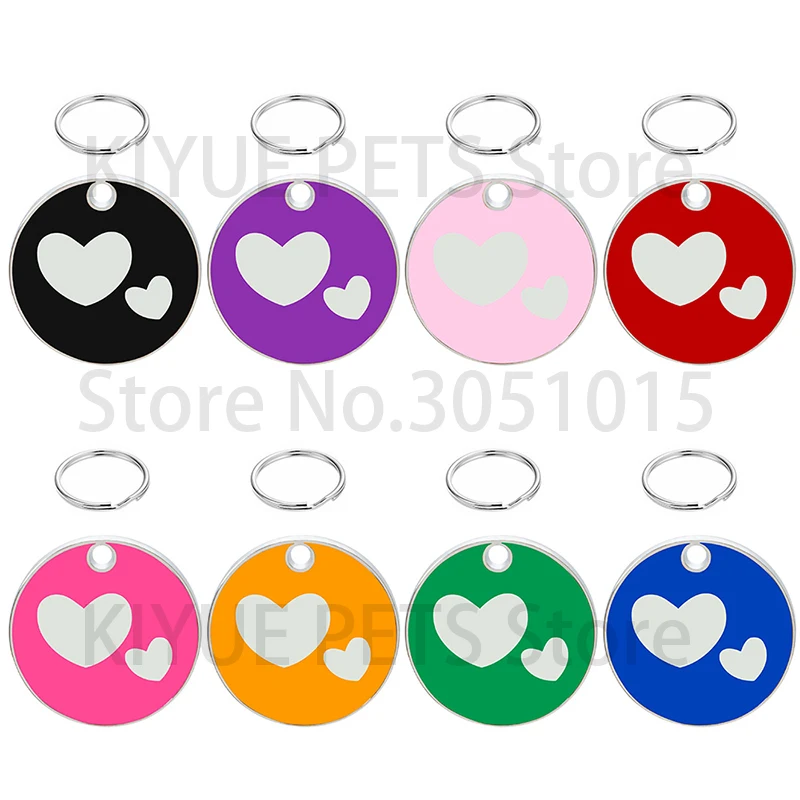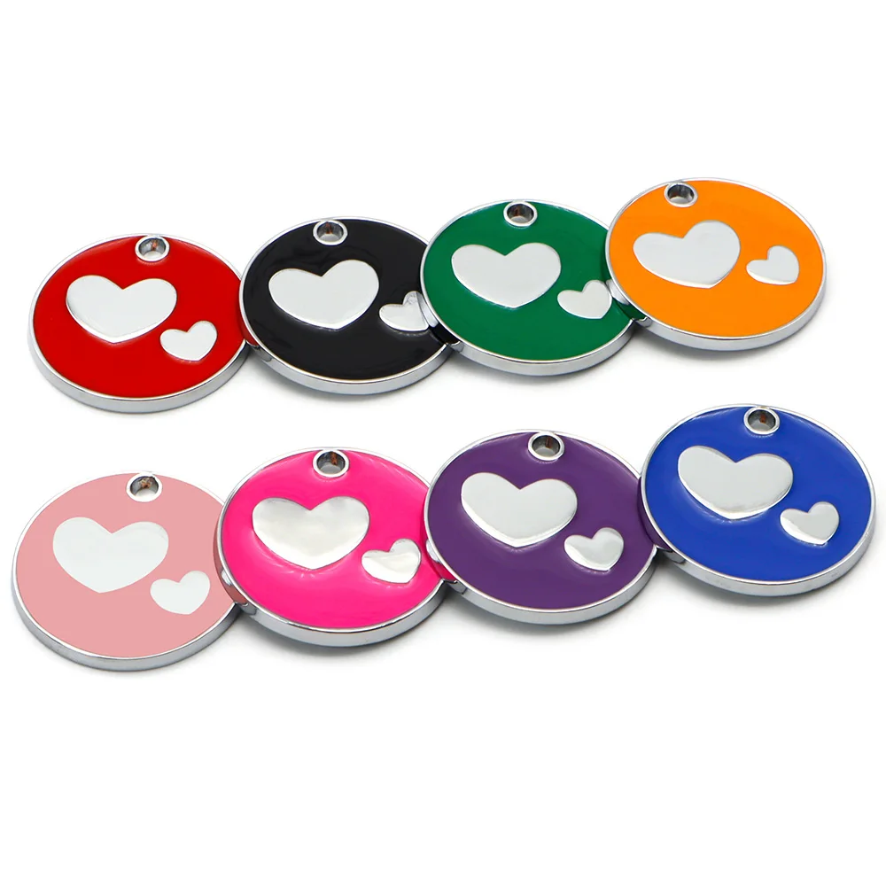 Etiqueta de identificación personalizada para perros y gatos, placas de nombre antipérdida para mascotas, placa de identificación grabada en blanco, colgante de corazón con forma redonda