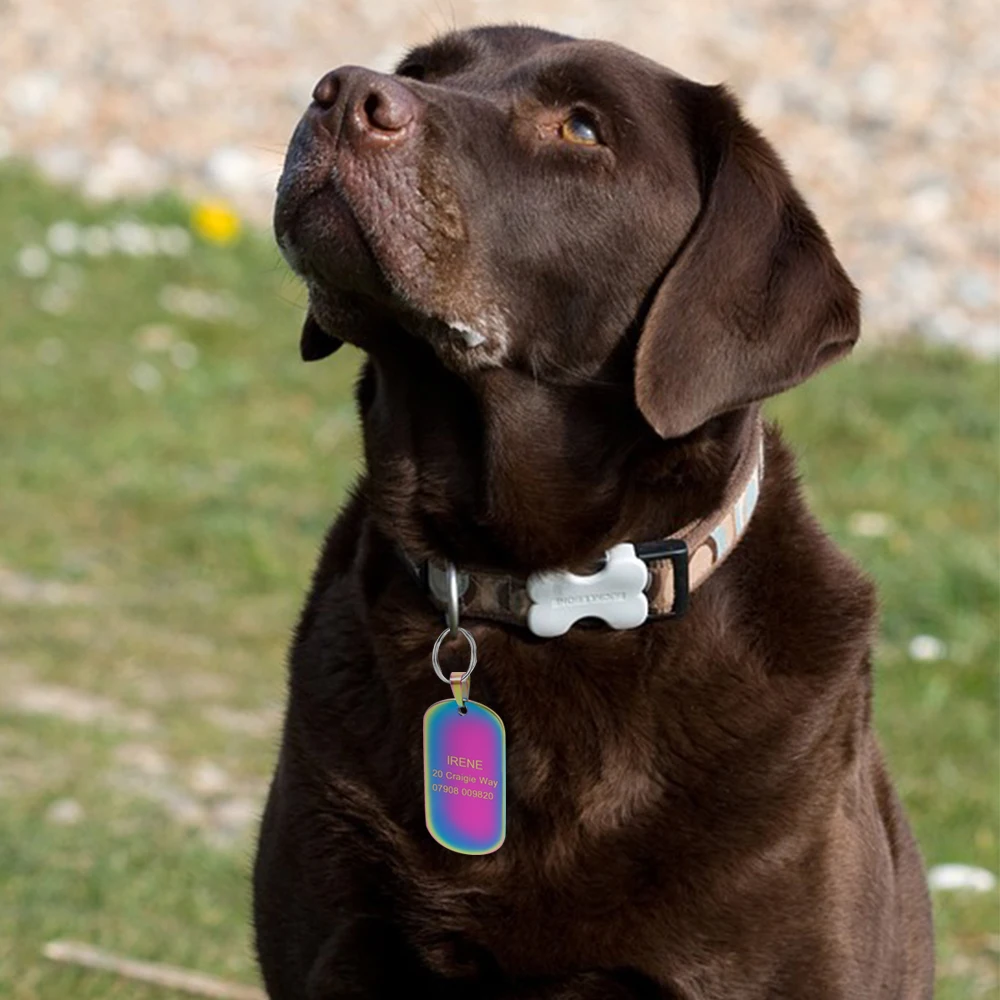 Nombre: etiqueta de identificación personalizada para perros y gatos de acero inoxidable, etiquetas militares personalizadas para perros, placa de nombre grabada para mascotas, accesorios para mascotas