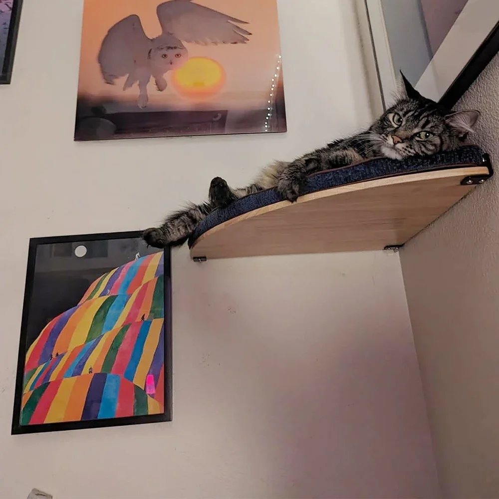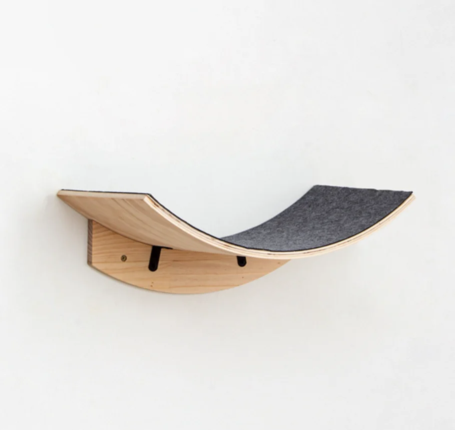 Plataforma curva de salto para gatos Marco de escalada para gatos montado en la pared Con tela de fieltro y hamaca para gatos Muebles de madera montados en la pared