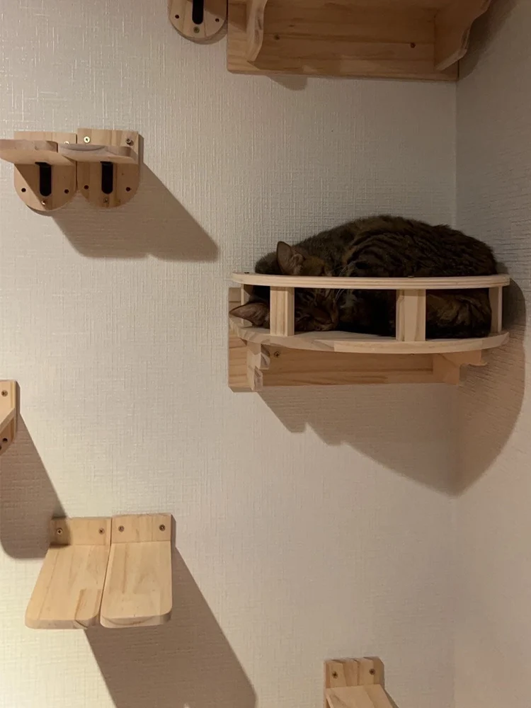 Bueno para la salud Los estantes de pared para gatos se adaptan al hábito de los gatos de escalar, aumentan el ejercicio y reduciendo la posibilidad de obesidad, lo que es bueno para la salud.Además, le da a los gatos espacio para escalar y evitar estropear la casa.